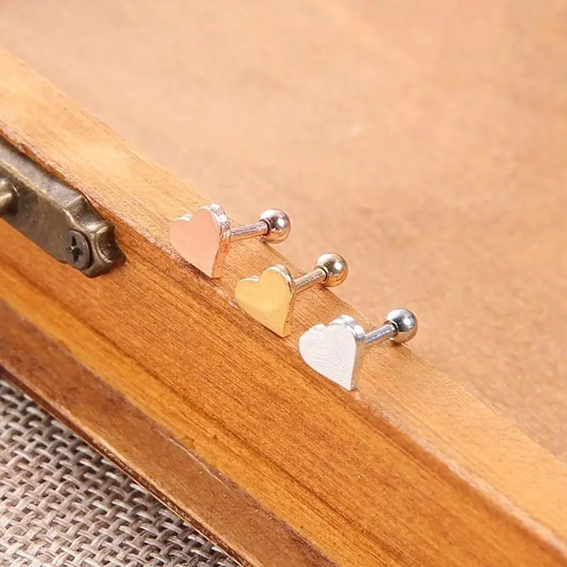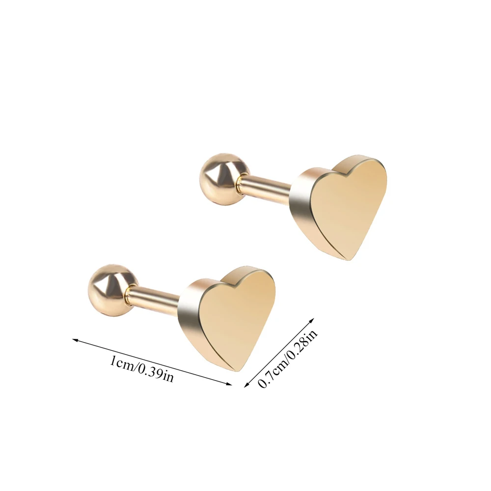 Women Heart Stud Earrings Shiny Smooth Side Simple Mini Earrings Chainless Fashion Female Earring Jewelry Accessories Girls