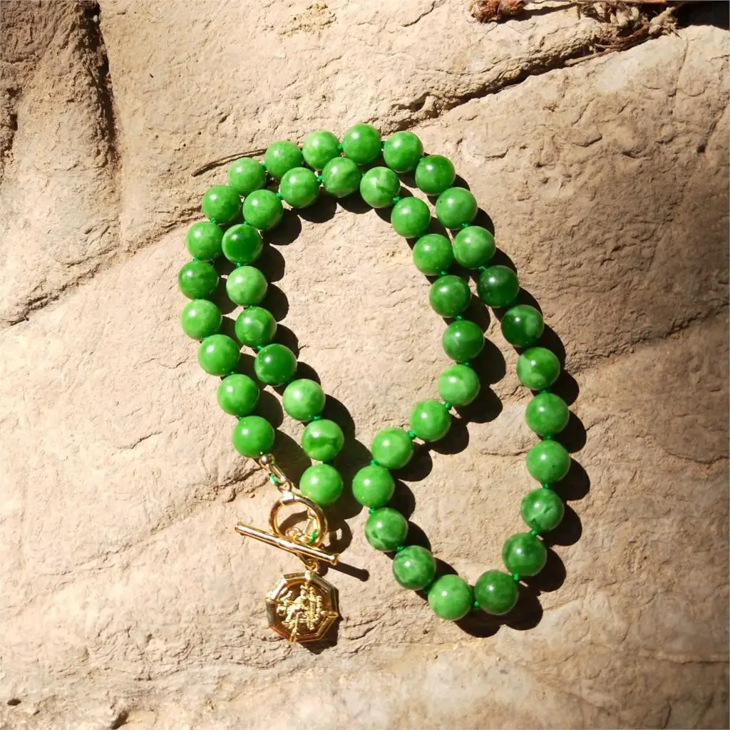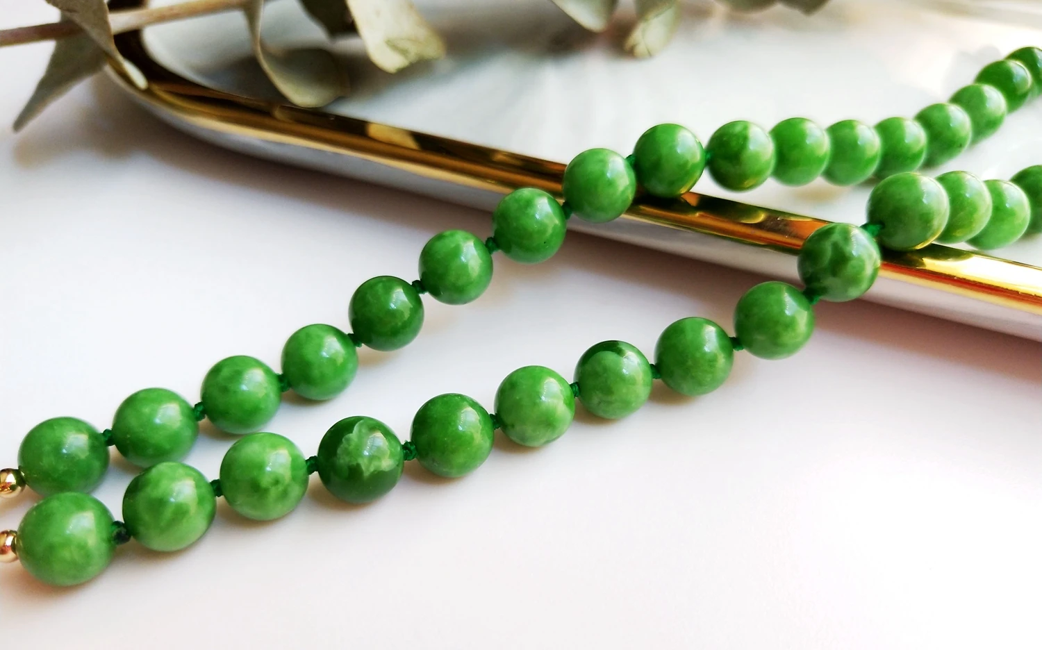 8 мм детали зеленого нефрита, мы сделали узлы между каждой бусинкой для защиты бусин.