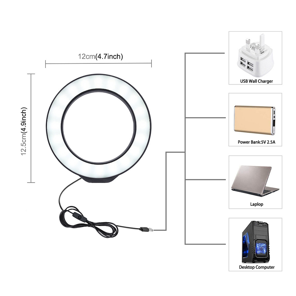 3. Usb-порты можно использовать с несколькими устройствами, такими как подключение хоста компьютера, ноутбука, мобильного питания и USB зарядного устройства. Вы сможете наслаждаться светодиодный светильник кольцо в любое время бесплатно.
