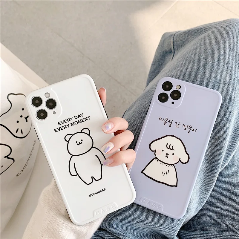 Мягкий чехол с рисунком медведя собаки s для ip X XR XS Max Capa фиолетовый белый чехол для телефона чехол для ip 11 Pro Max 7 8 plus пара задняя крышка