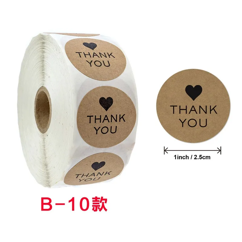 500pcs/roll Kraft Paper Round Thank You Stickers for Package Seal Labels Custom Sticker Handmade Decoration Gift Wedding Sticker
