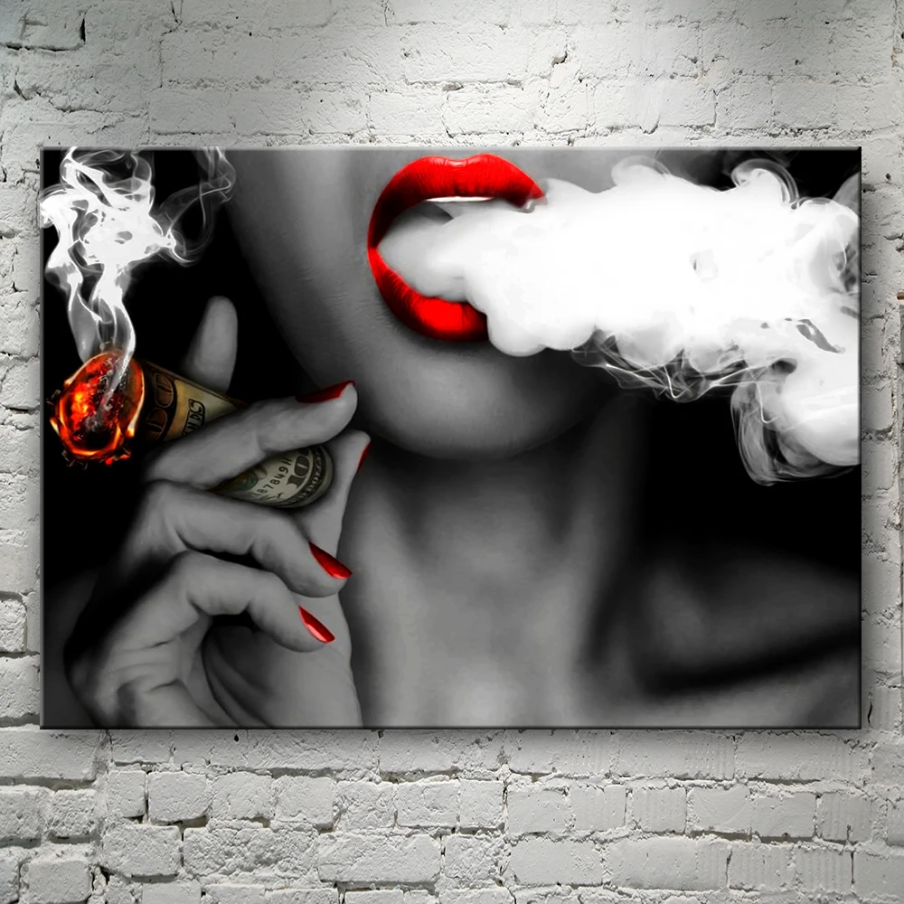 Настенная живопись на холсте, граффити, доллар США, деньги, облака, девушка, сексуальные губы, абстрактный плакат, картины, украшение для дома, гостиной