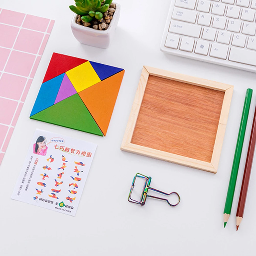 Деревянные красочные Танграм геометрические головоломки доска обучающая игрушка детский подарок