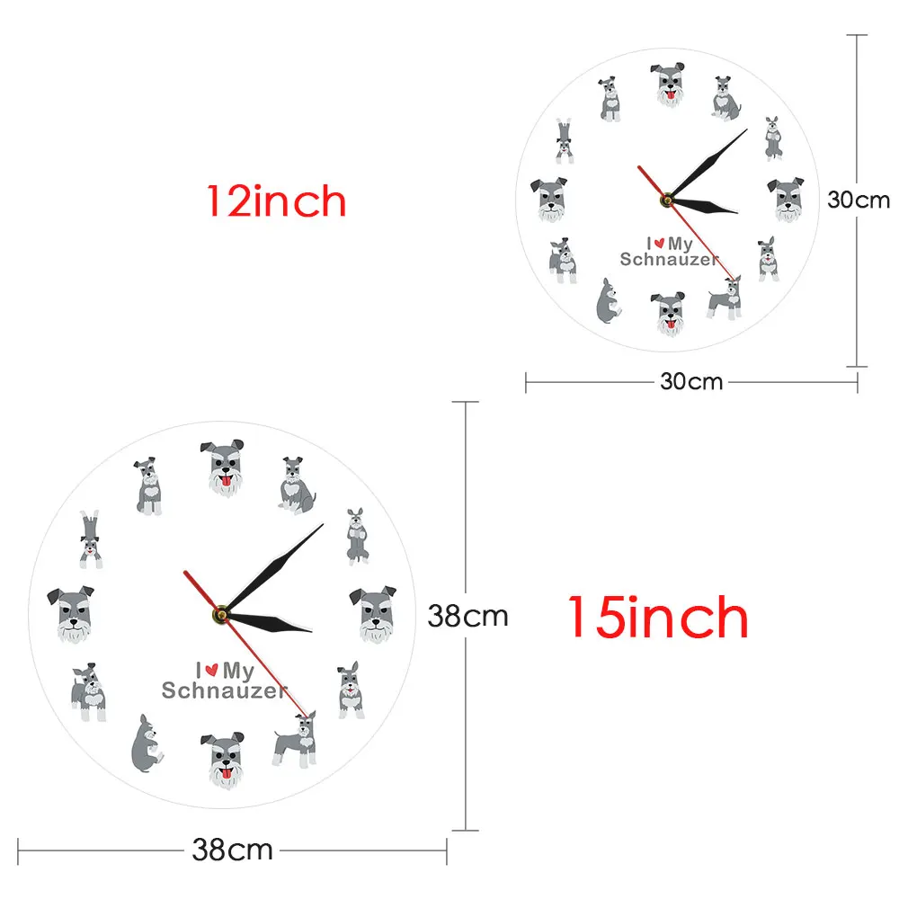 Вы ищете красивые настенные часы? Это может быть ваш шанс получить один. Эти настенные часы Schnauzer-это качественный рисунок, который имеет яркие цвета, которые будут поддерживать их цвет в течение многих лет. Лицо напечатано на 2 мм толстой акриловой поверхности. Края красиво отделаны. Вы оцените солидное качество и ощущение этих красивых часов. Это может быть даже идеальным украшением для вашей комнаты или полки, если вы хотите. Вы можете использовать его дома или в офисе, или где бы вы ни хотели его положить. Этот предмет делает уникальный акцент в качестве полезного, декоративного хронографа.