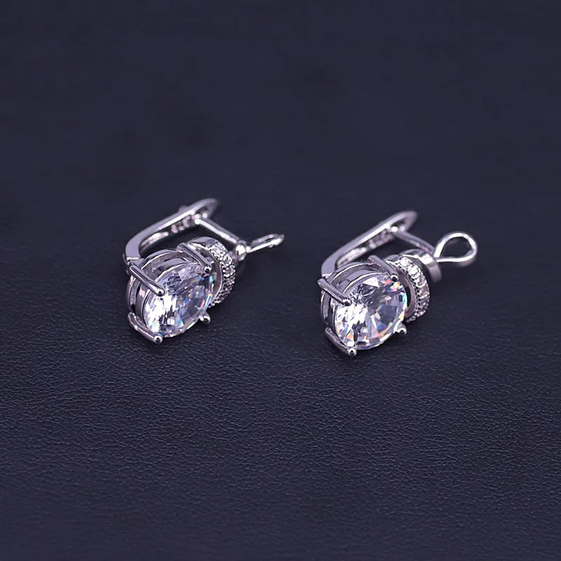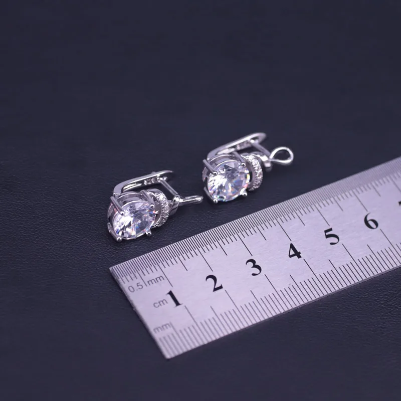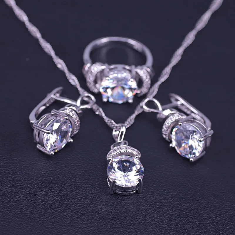 Promotion Big Round Austrian Crystal Silver Color Jewelry Set For Women Hoop Earrings Ring Necklace Bracelet Set Bridal Jewelry