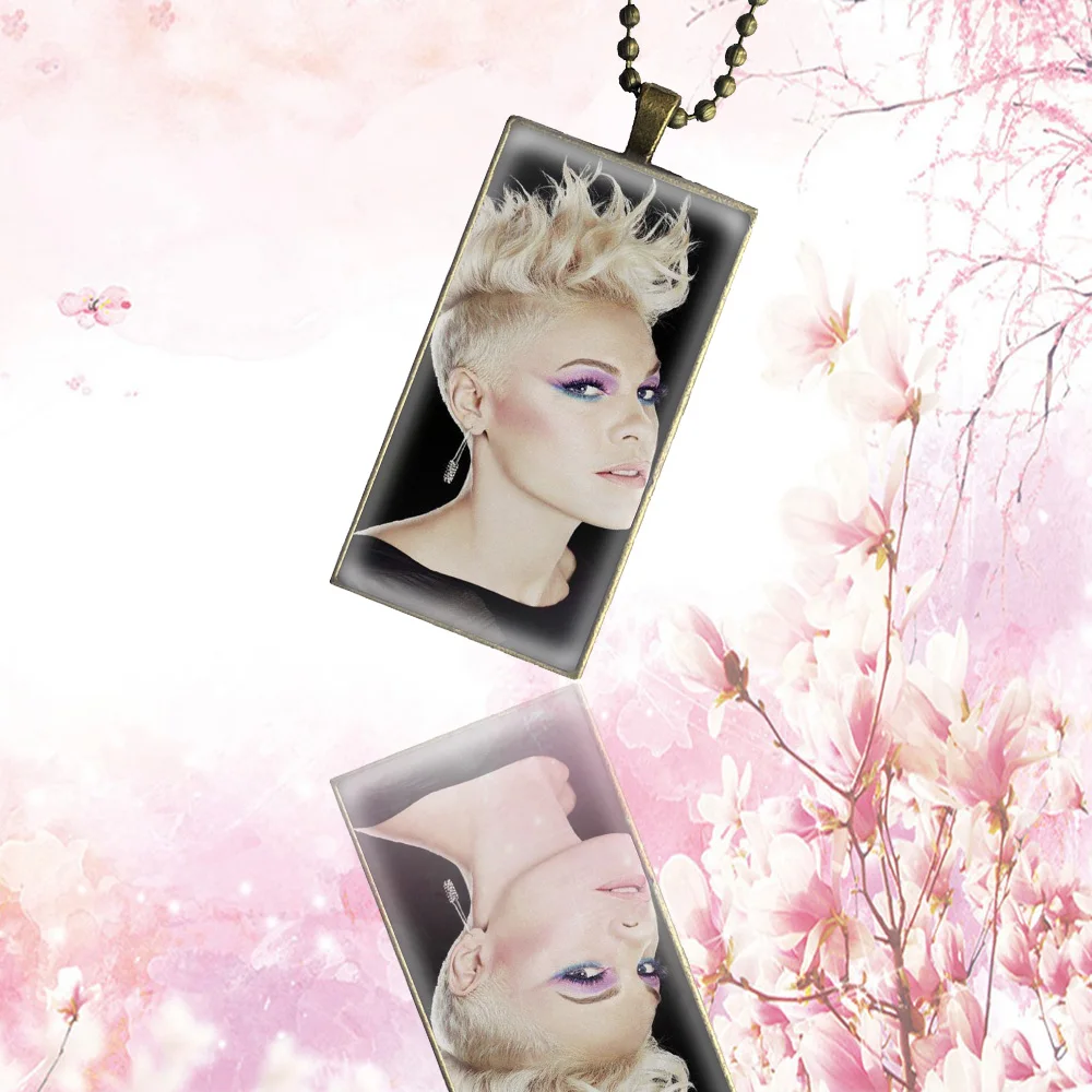 Розовый P!nk горячей певец для женщин дети ожерелье со стальным покрытием стекло колье с кабошоном Длинные кулон прямоугольное ожерелье