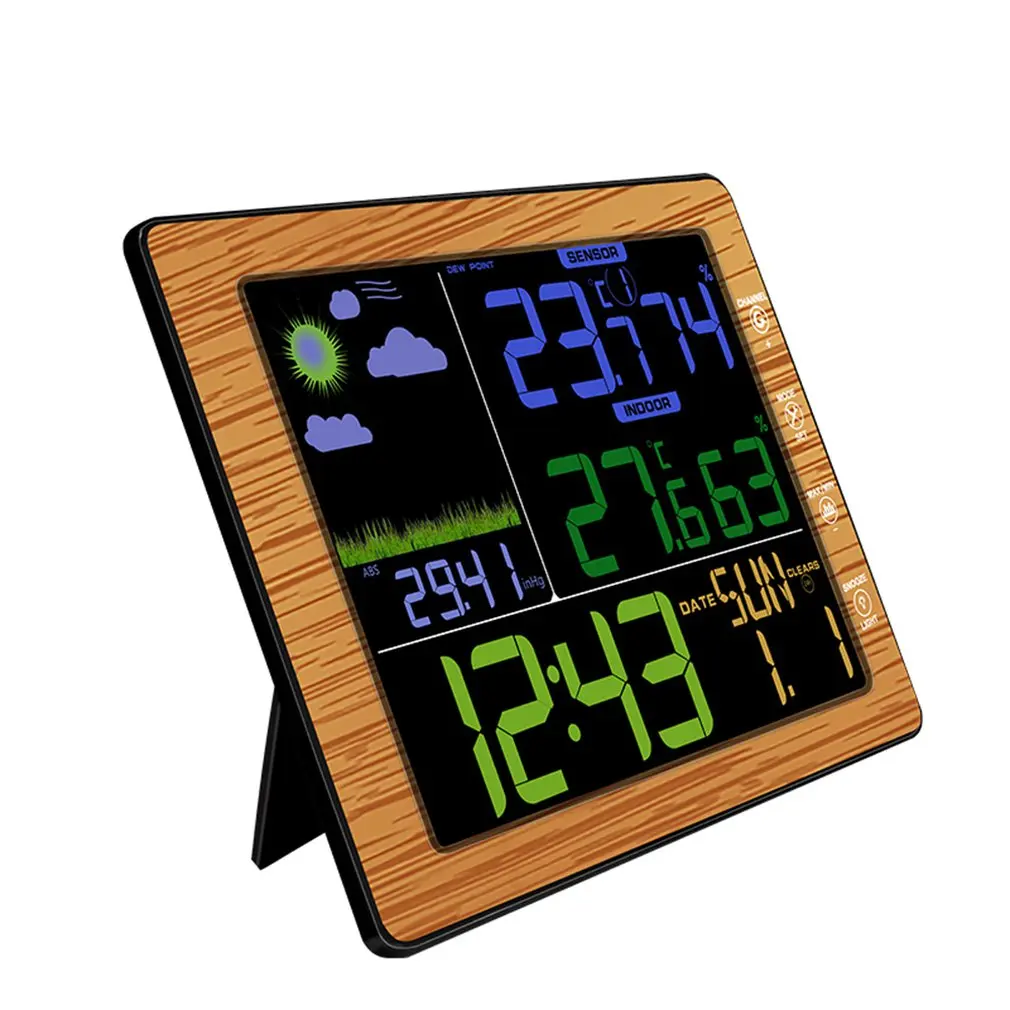 1. Температура + давление воздуха + погода: на большом цветном дисплее 20 см вы одновременно будете знать температуру, давление воздуха, погоду, время и дату. Все показано в больших, легко читаемых буквах. Помимо множества полезных функций, Метеостанция также может использоваться как будильник, включая функцию повтора сигнала с кнопкой повтора.