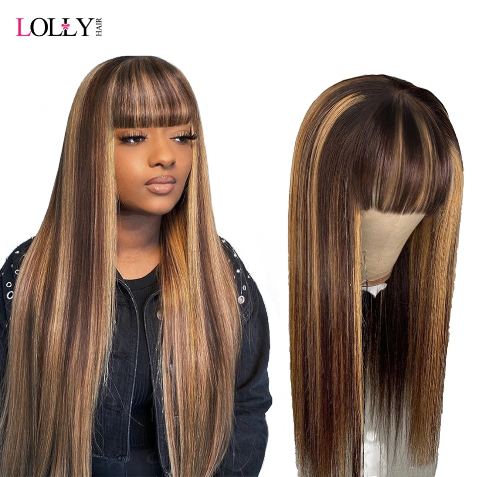 Парик для волос на палочке, медовый блонд, парик для волос с челкой, бразильский прямой бесклеевой парик с аккуратной челкой для черных женщин