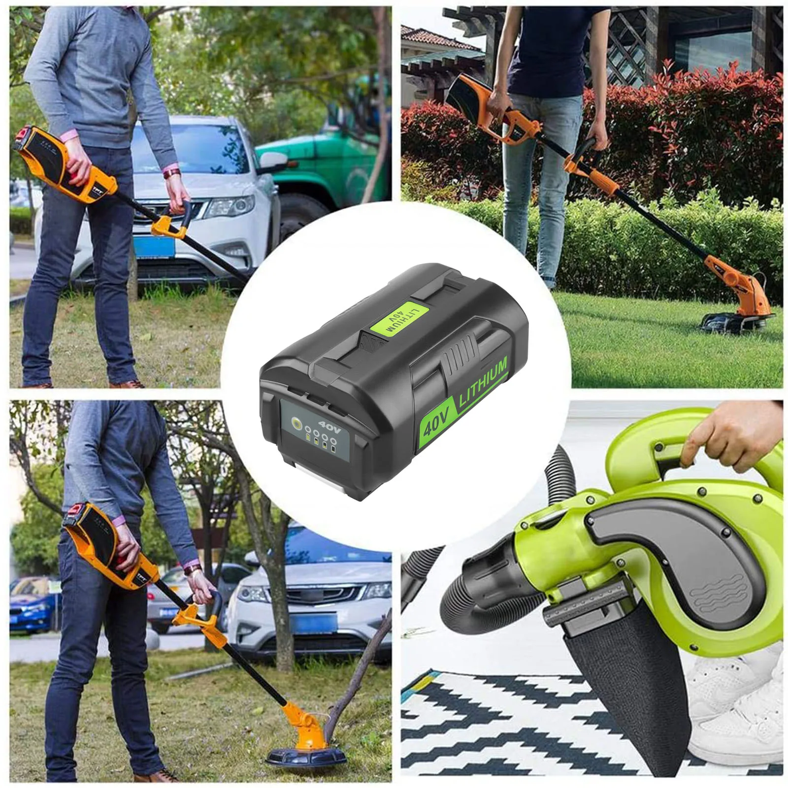 Совместим с литиевыми инструментами RYOBI 40V и chargersThis батарея заменяет все для аккумуляторов Ryobi 40v, совместим с литий-ионными инструментами Ryobi 40V RY40403 RY40204 и зарядными устройствами OP401 ZROP401. (В настоящее время не работает с зарядным устройством OP403 и бензопилой RY40503.)