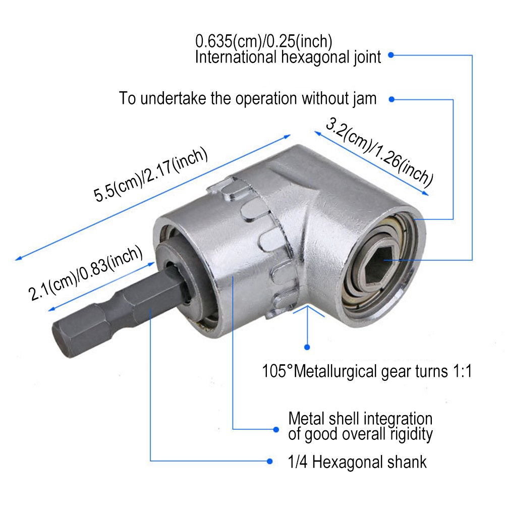 Product name: 105 Degrees Angle Extension 1/4 Inch Hex Drill Bit Screwdriver Tool Drilling Turning Head Screwdriver Socket Holder Adaptor Turning Head Screwdriver
