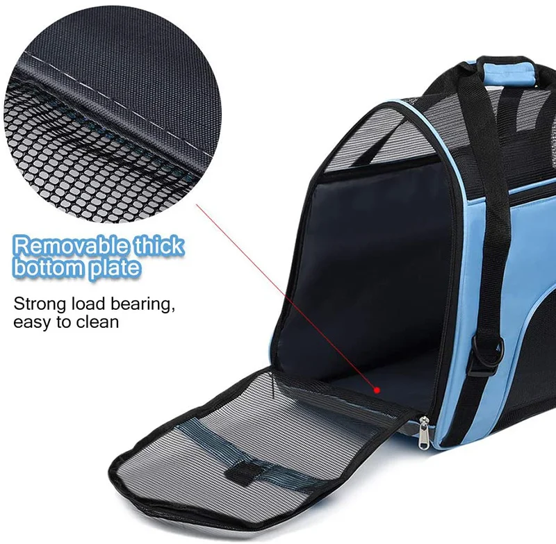 【Удобный и Воздухопроницаемый 】: поднос для домашних животных разработан с четырьмя мягкими бортами и сетчатой панелью, чтобы ваш питомец мог дышать свежим воздухом и наслаждаться видом. Позвольте вашему питомцу расслабиться и получить двусторонний доступ с боковой застежкой-молнией.