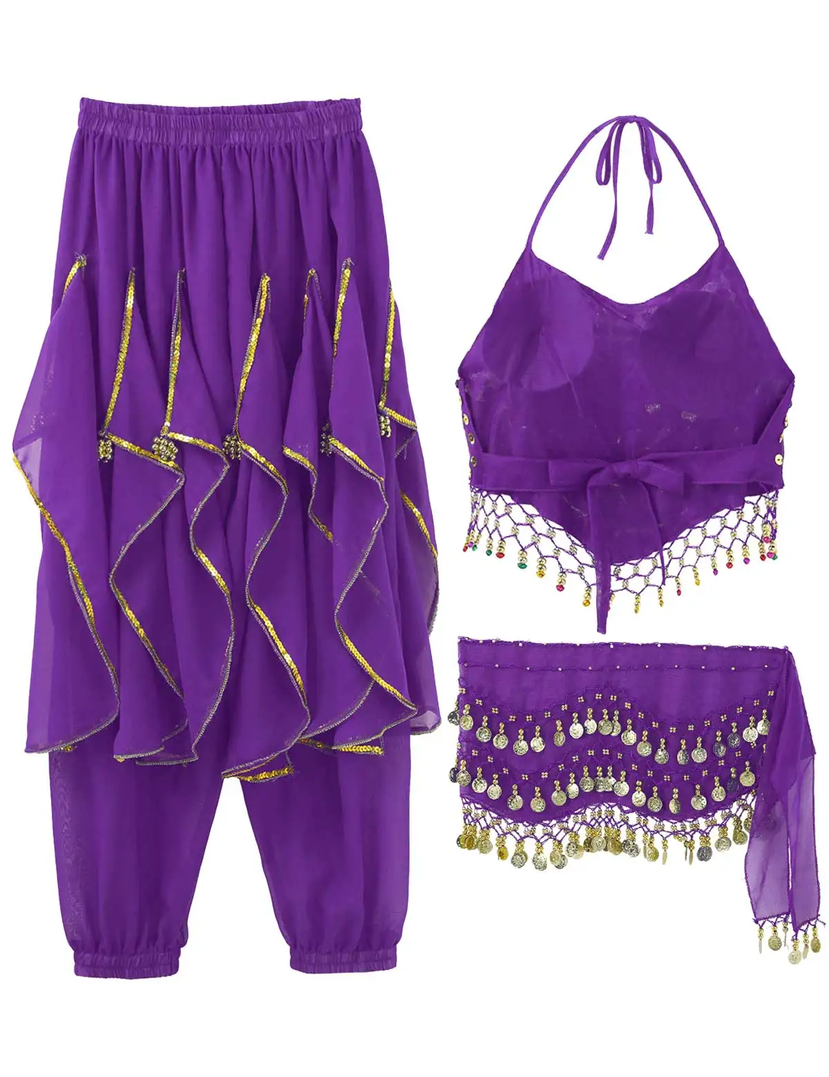 Women’s belly dance halloween carnival india dance costume outfit, soft and cooling chiffon fabric for comfortable wear, one size fits most.
