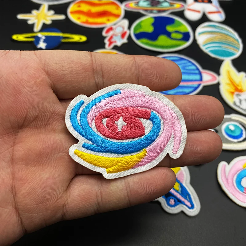 1. Наденьте наклейку на ткань, расшитую сбоку
