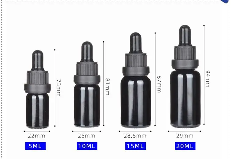 10pcs/lot 5ml 10ml 15ml 20ml 30ml 50ml 100ml black glass essential oil dropper bottle wtih piepette drop vials Containers