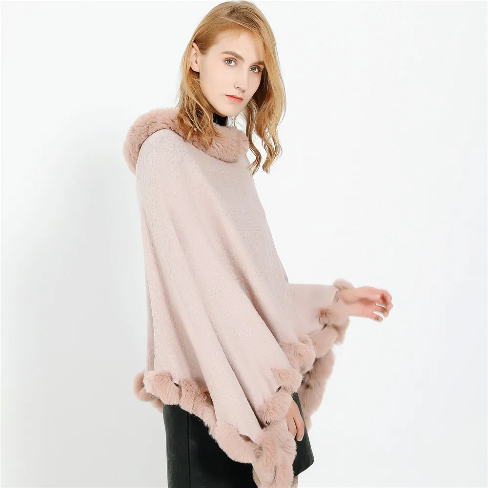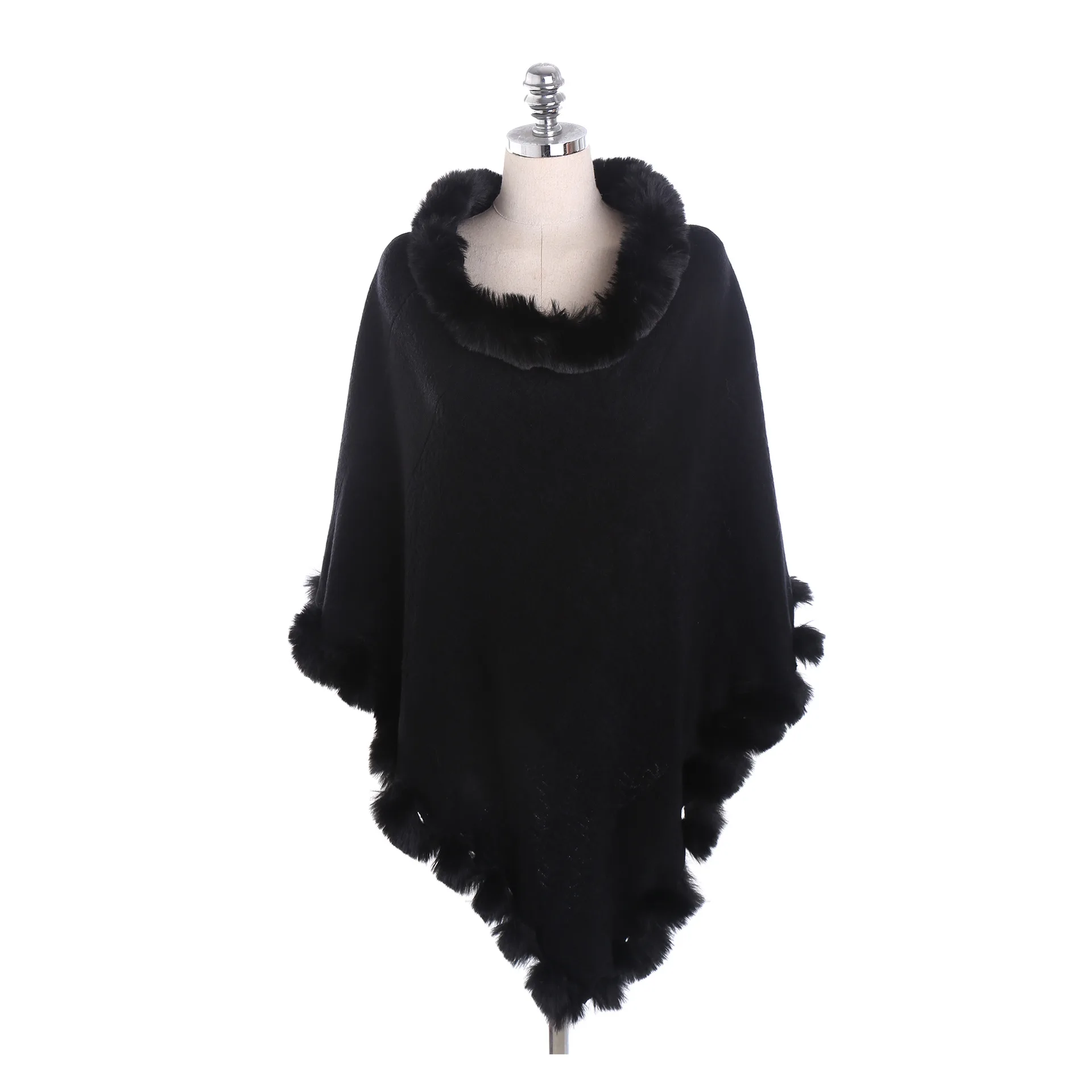 2020 зимние женские черные накидки, однотонное меховое пончо из искусственного кашемира, уличная одежда, свитер с круглым вырезом, теплый треугольный пуловер