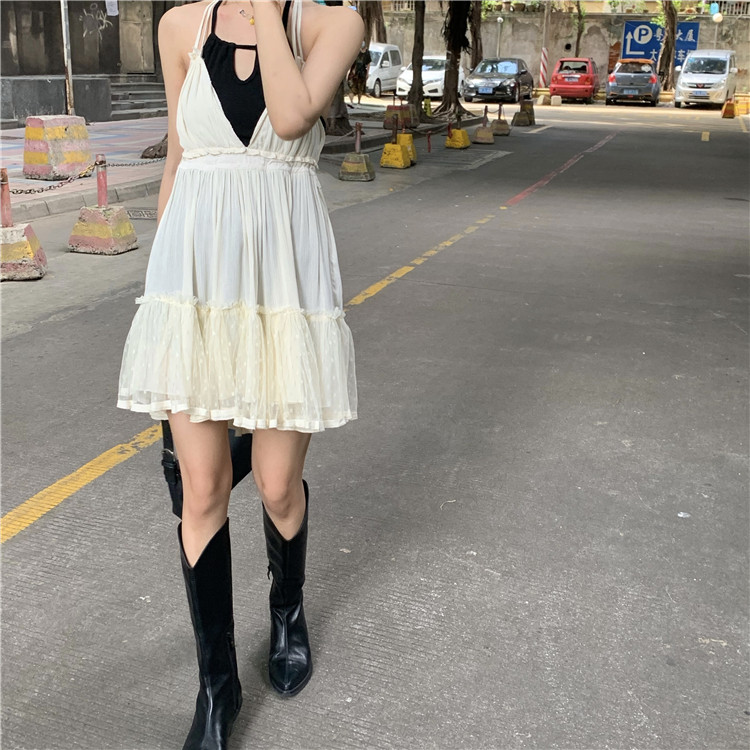 Женское мини-платье на тонких бретелях, свободное праздничное стильное платье на завязках для девушек, лето 2020