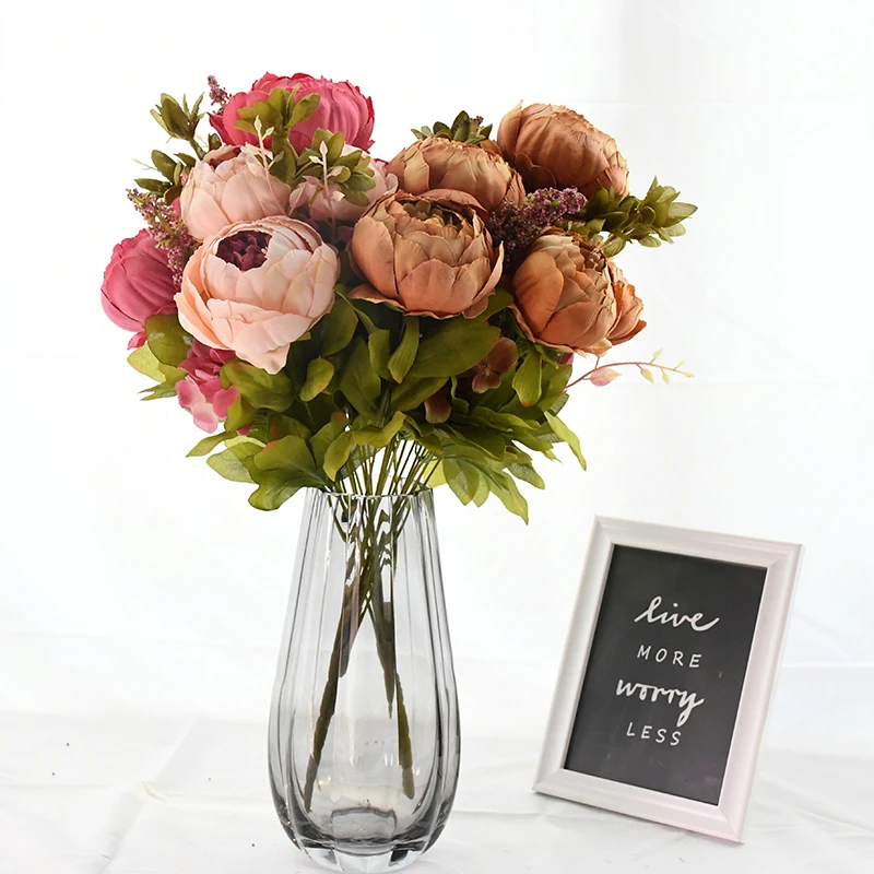 1 букет, Европейский искусственный цветок пиона, 6 головок, 2 бутона, свадебные букеты, Свадебная вечеринка, домашняя ваза, Декор, сделай сам, венок, скрапбук, ремесло