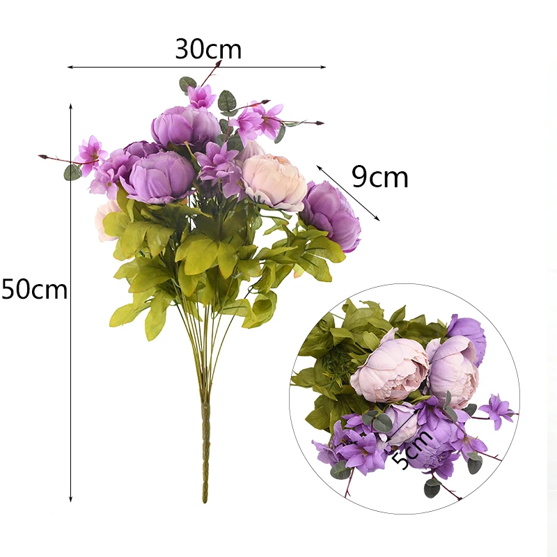 Посылка включает в себя: 1 букет Искусственный шёлковый пион с цветами.