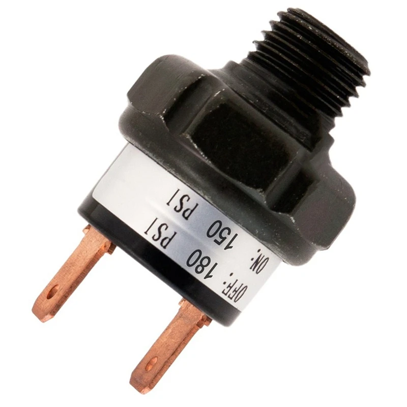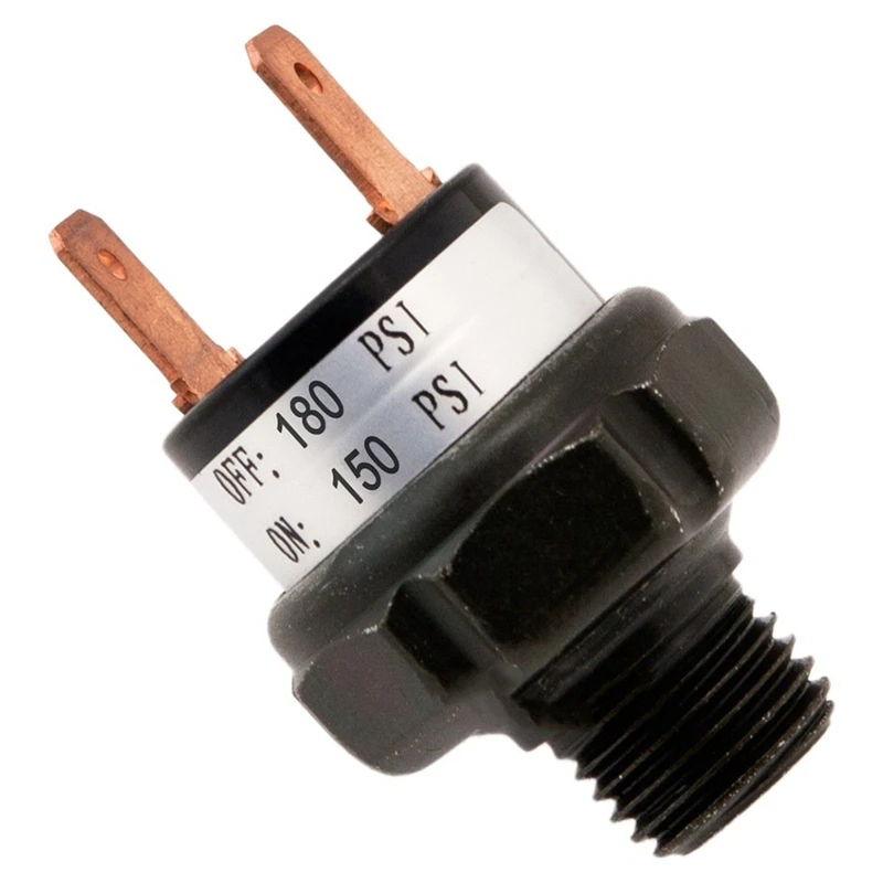 Этот Высокоточный переключатель давления для крепления на баке регулирует давление воздуха в вашем воздушном баке. Резьбовая сторона-1/4 дюйма NPT Male. Реле давления подключается к компрессору и автоматически включается, когда давление резервуара ниже 150 PSI и выключается, когда давление достигает 180 PSI. Рассчитано на 12 и 24 вольт транспортных средств и с сроком службы более 10 000 циклов, это идеальное решение для систем воздушного рога и пневматической подвески.