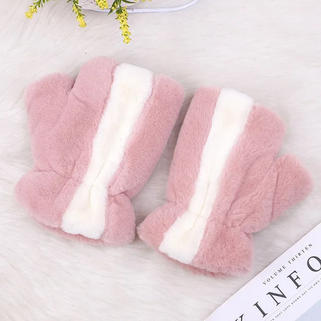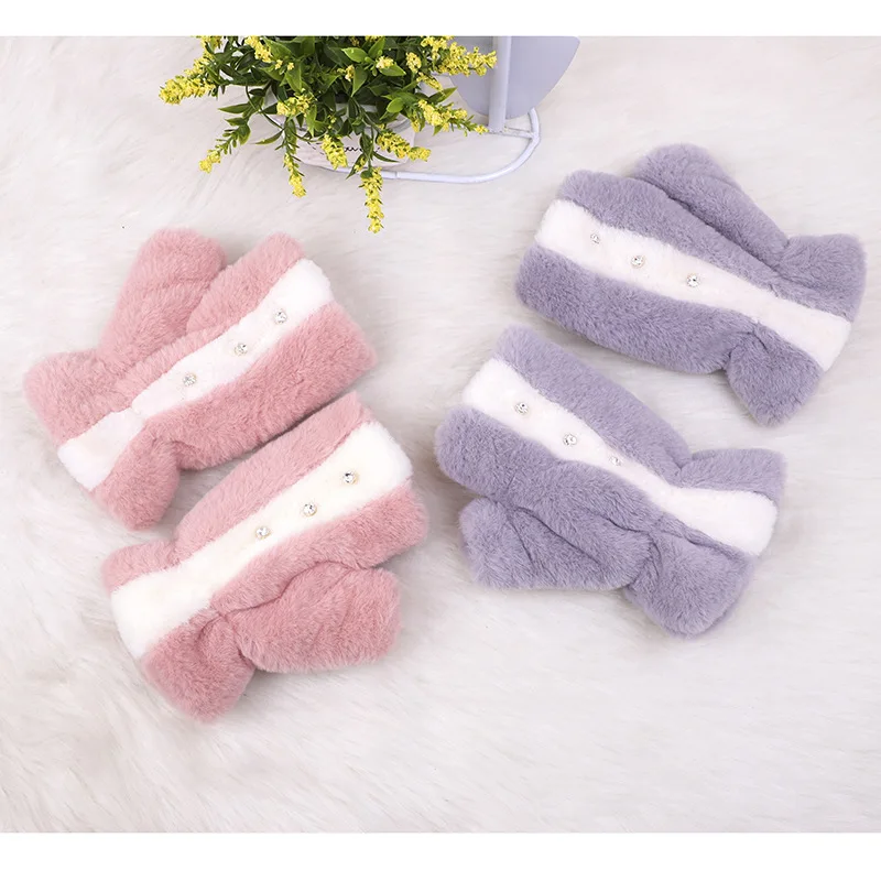 Женские зимние теплые кашемировые перчатки с мультяшным смайликом и бантом