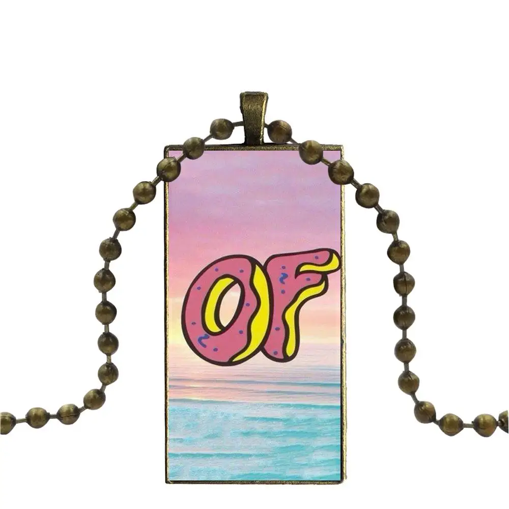 Ofwgkta Odd Future Of Golf Wang для девочек, стеклянный кабошон, чокер, подвеска, прямоугольное ожерелье, ювелирное изделие бронзового цвета