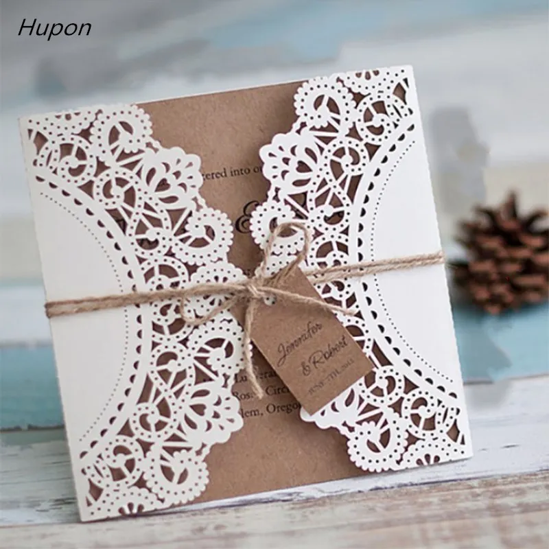 10/20/50 шт винтажные приглашения на свадьбу с лазерной аппликацией, бумажные конверты с лентой подарочная поздравительная открытка наборы Свадебные украшения для праздника вечерние поставки