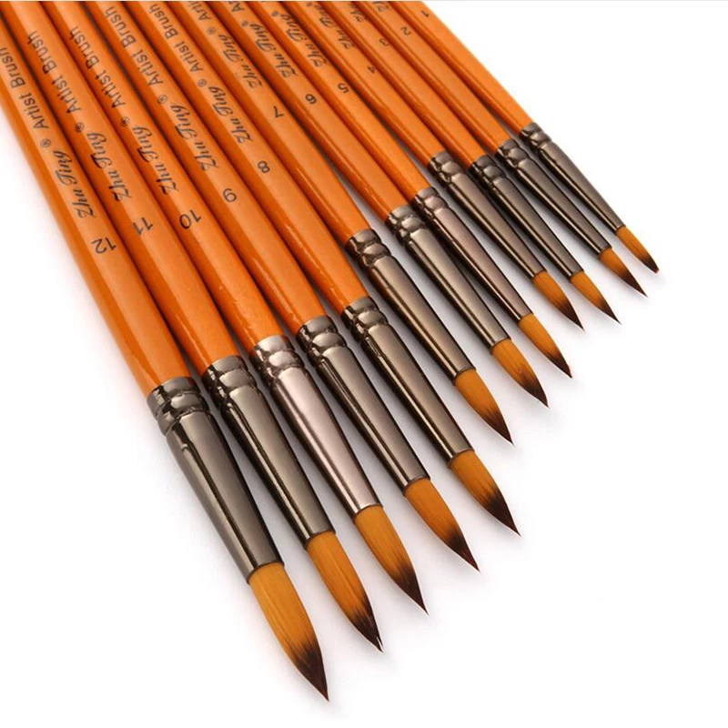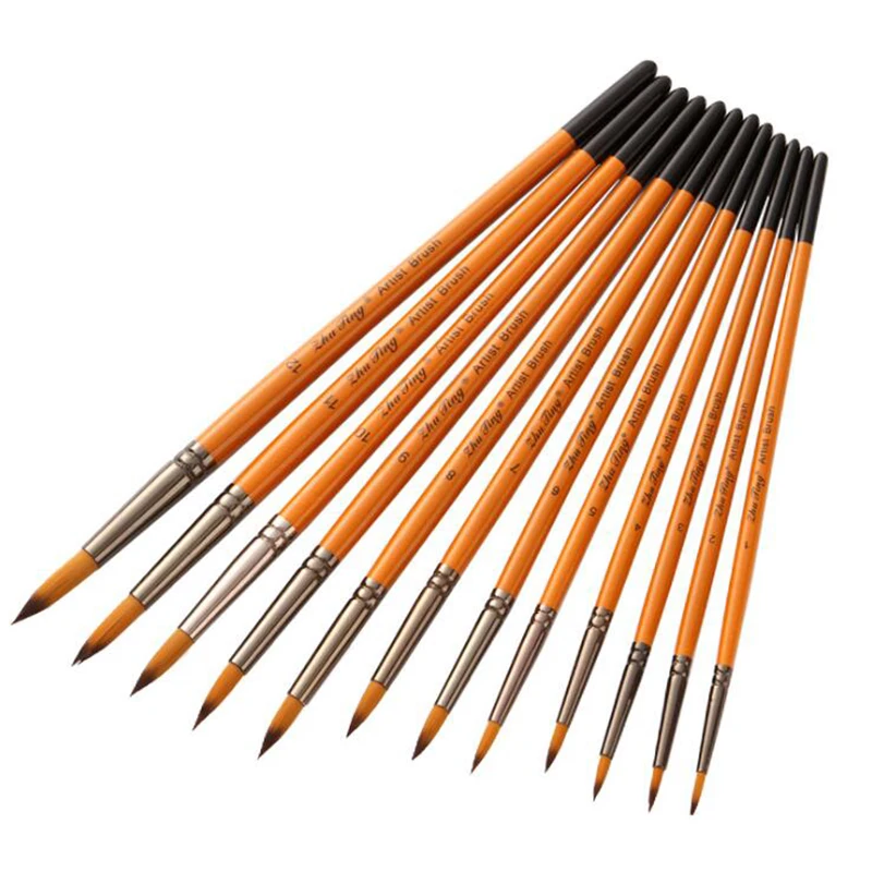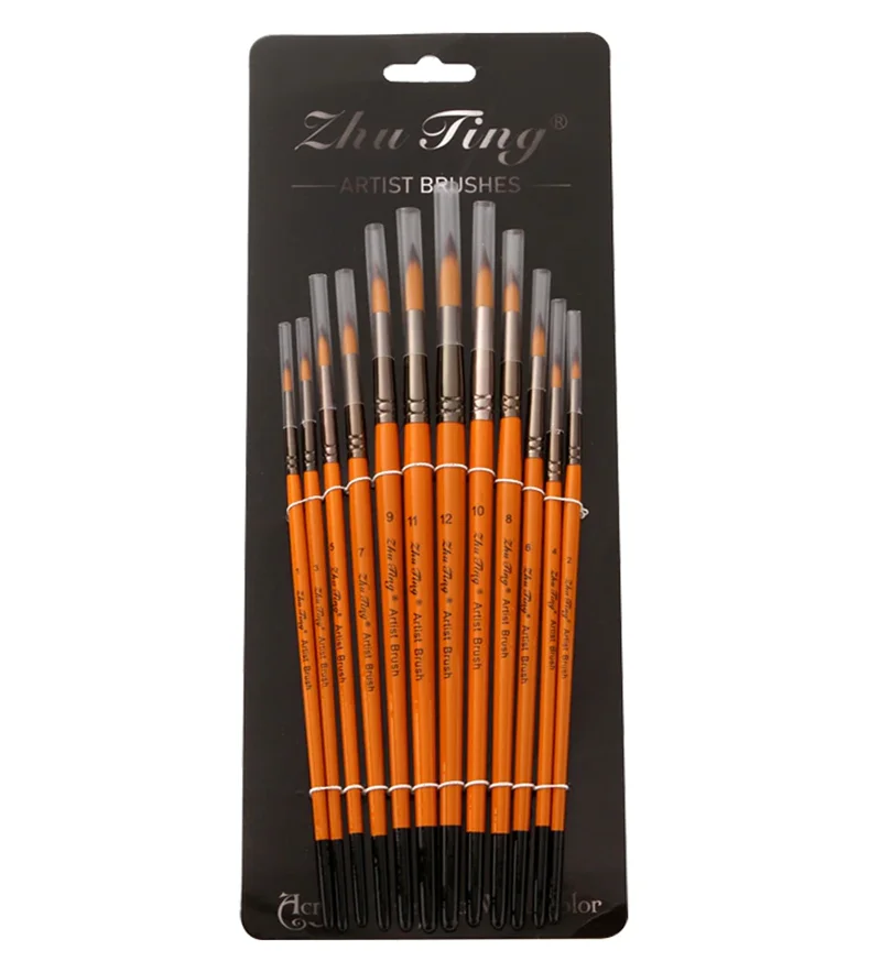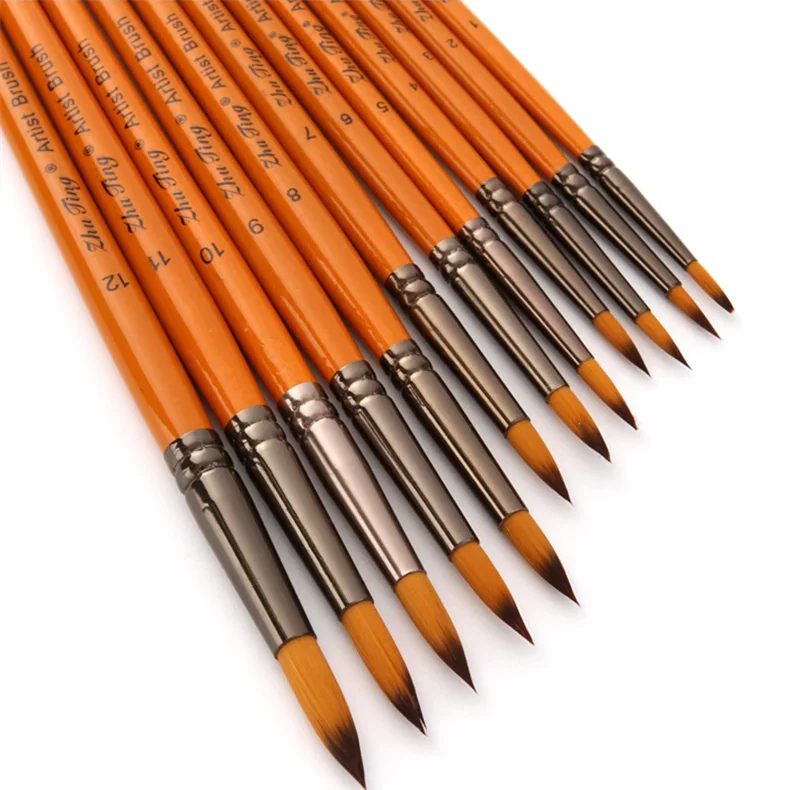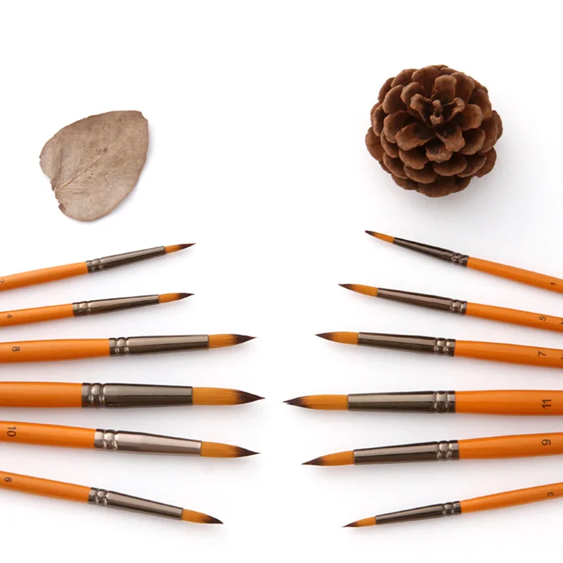 Цвет ручки: Оранжевый красный стержень Материал ручки: деревянный Материал волос: нейлон Количество: 12 шт./компл. Примечания:-Нейлоновые волосы не расправляются во время окраски.