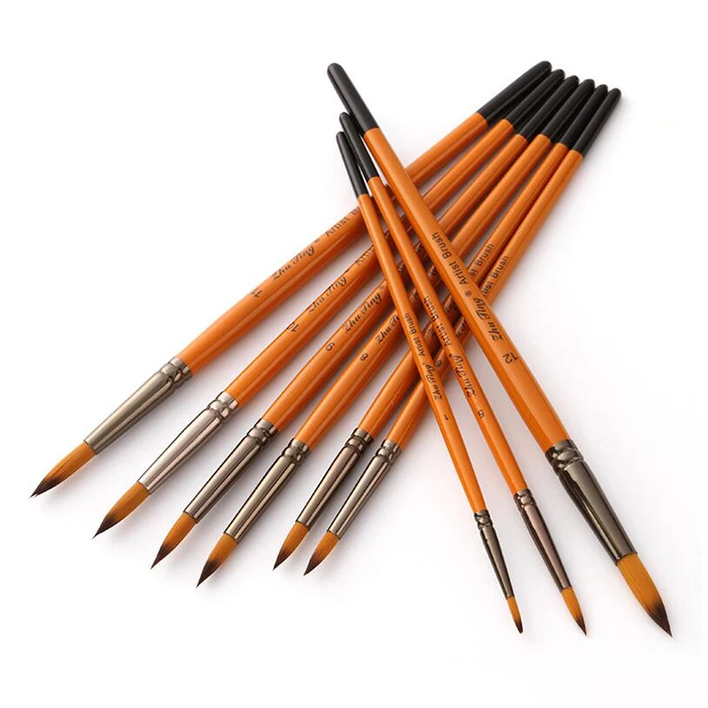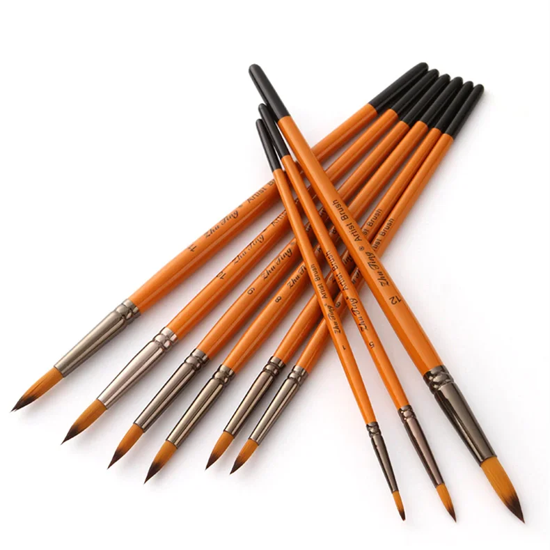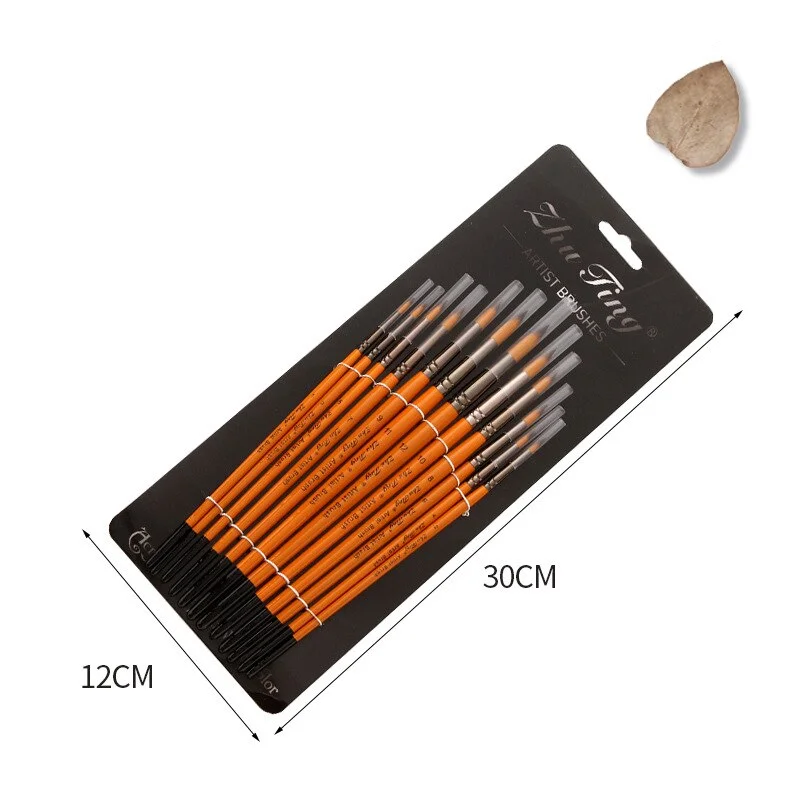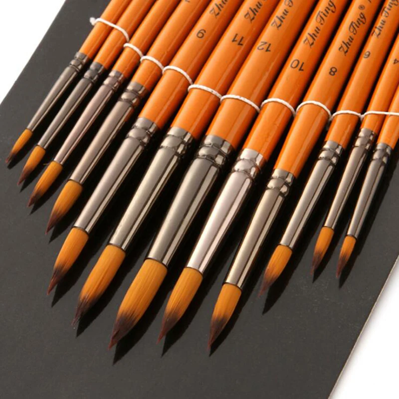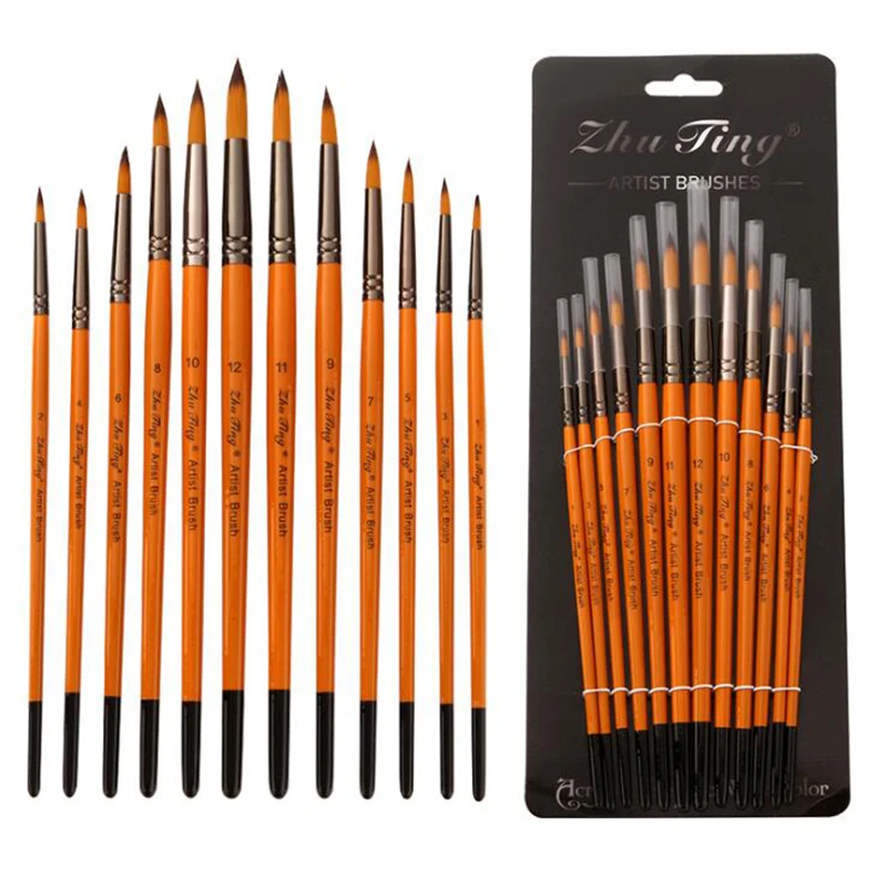 Цвет ручки: Оранжевый красный стержень Материал ручки: деревянный Материал волос: нейлон Количество: 12 шт./компл. Примечания:-Нейлоновые волосы не расправляются во время окраски.