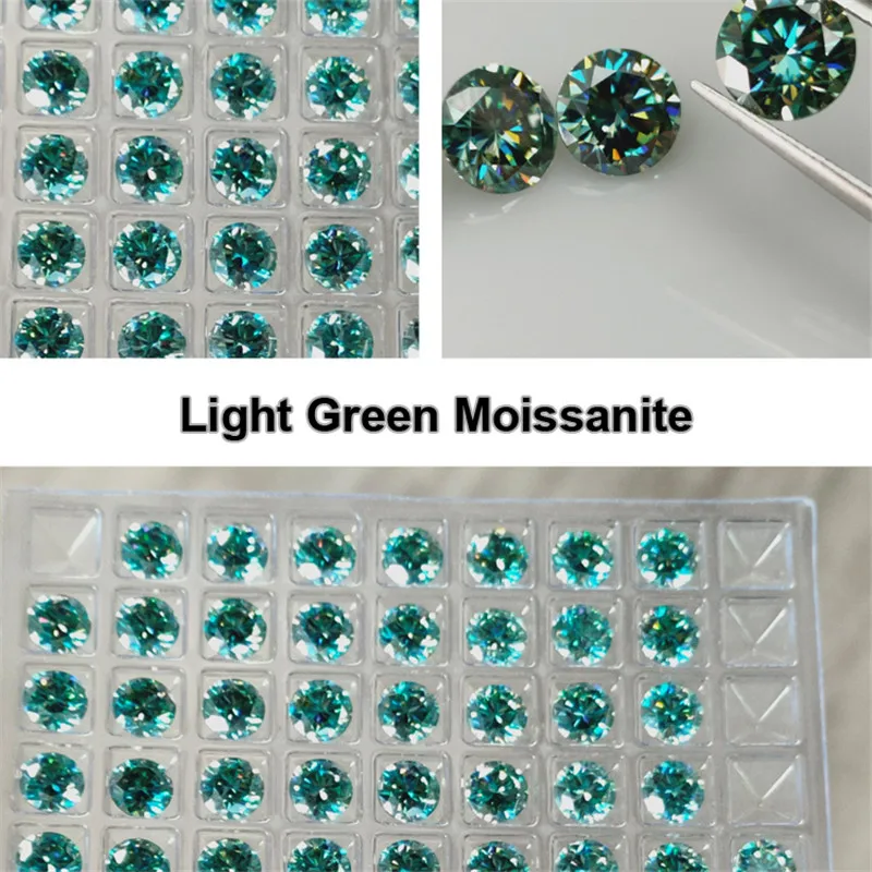 5-12 мм светильник зеленое синтетическое кольцо с алмазом Moissanite 1ct Свободные Круглые бриллиантовые огранки Moissanite драгоценный камень