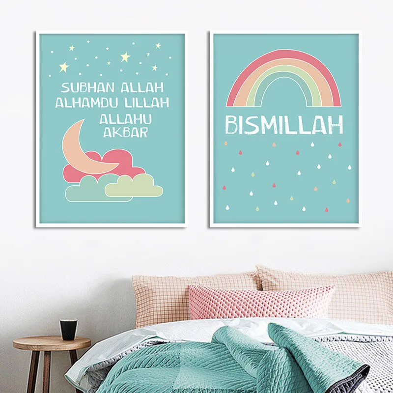 Мусульманская Роспись стен Аллах Бисмиллах детский плакат Радуга Детская