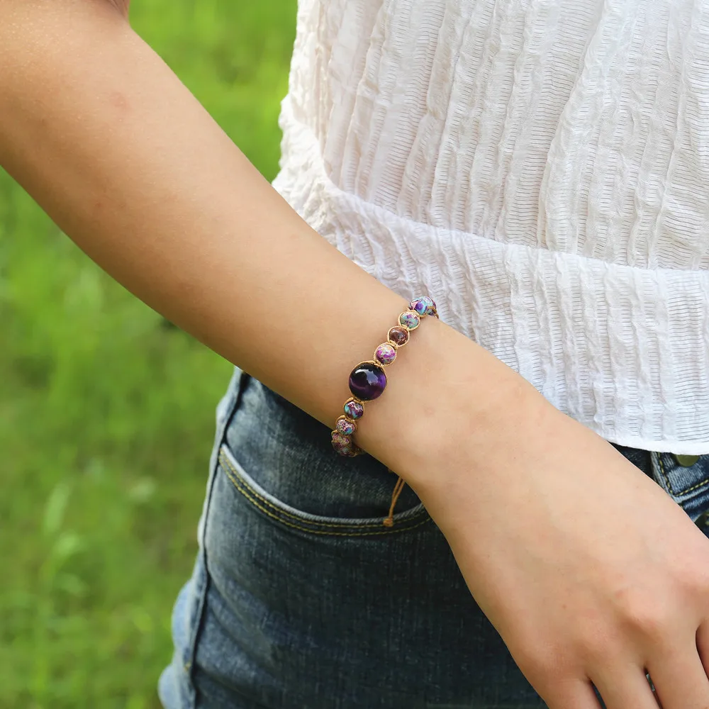 Ювелирные изделия ручной работы, императорские камни, трубчатые бусины, чакра, кожаный браслет и браслет для женщин и мужчин, богемный Браслет Йога кулон, подарок
