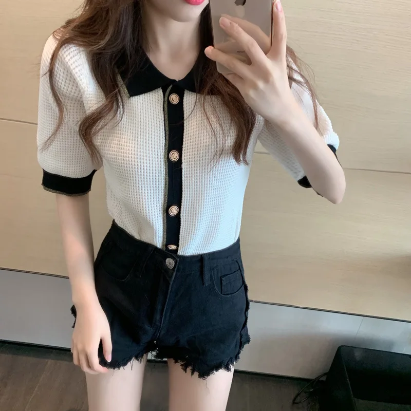 2020 Модные женские летние рубашки поло трикотажные рубашки с коротким рукавом
