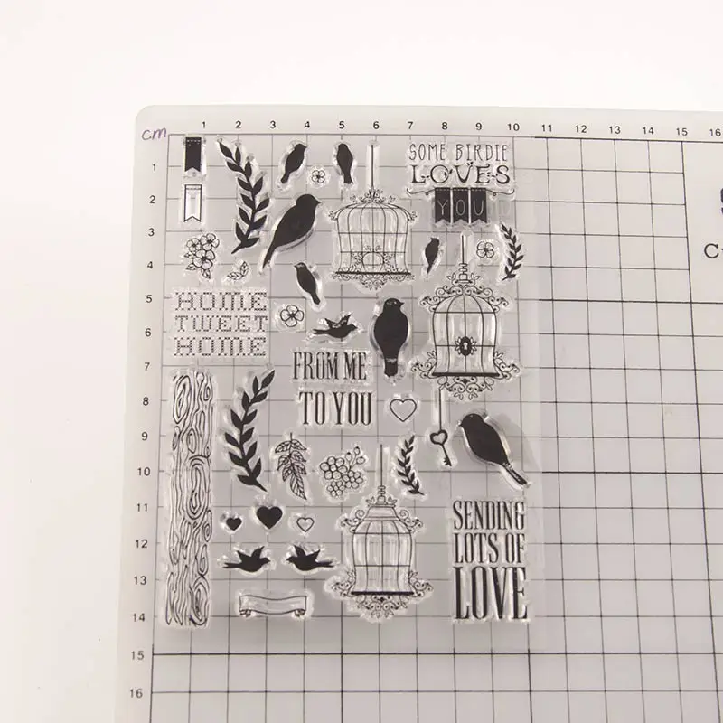 Клеточка с листьями и птицами, прозрачный штамп в форме сердца, силиконовые уплотнения «сделай сам» для скрапбукинга, изготовления открыток, украшения для фотоальбома, листы