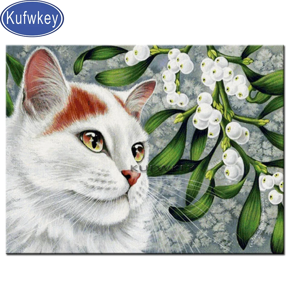 Большие глаза, Белый Кот, алмазная картина, полностью квадратная круглая дрель, животный цветочный узор, рукоделие, алмазная вышивка, ручная работа, подарок