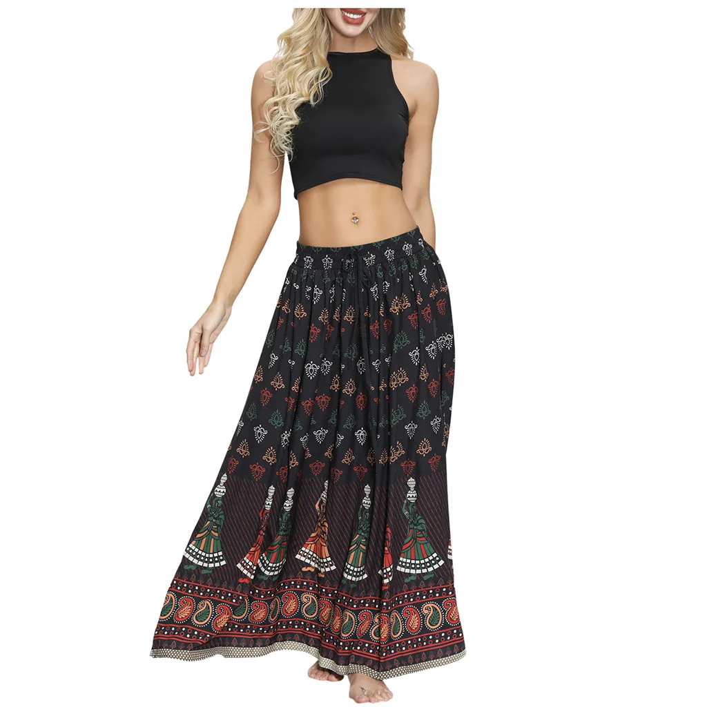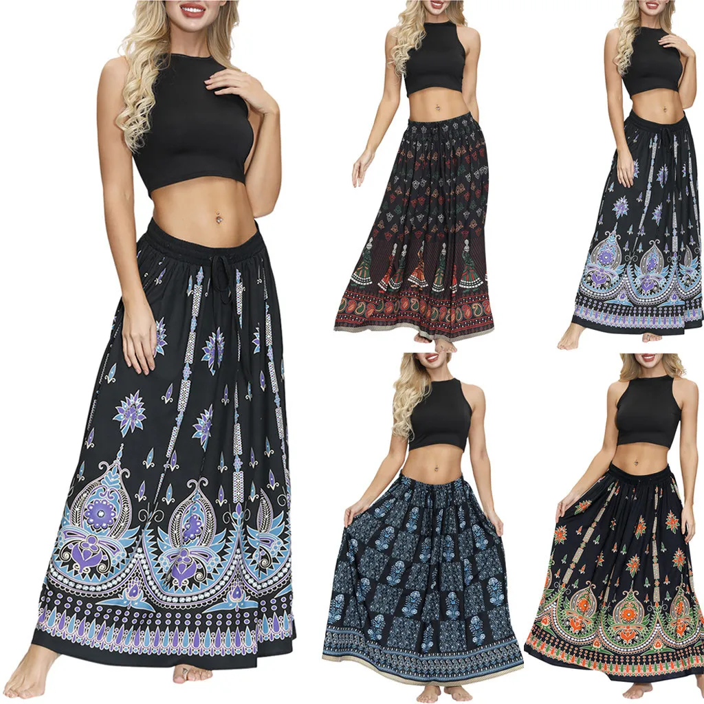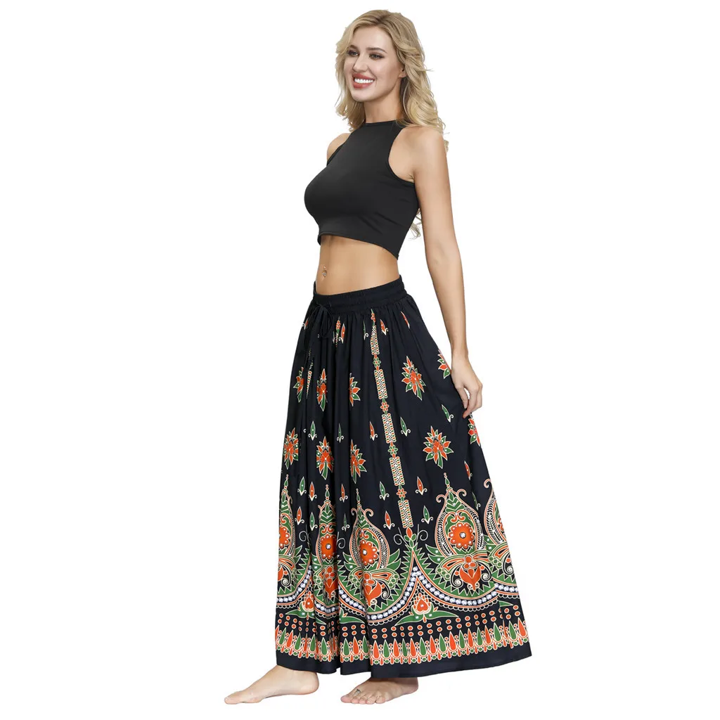 2. Этнический принт, эластичная резинка на талии, свободная и Цветочная.