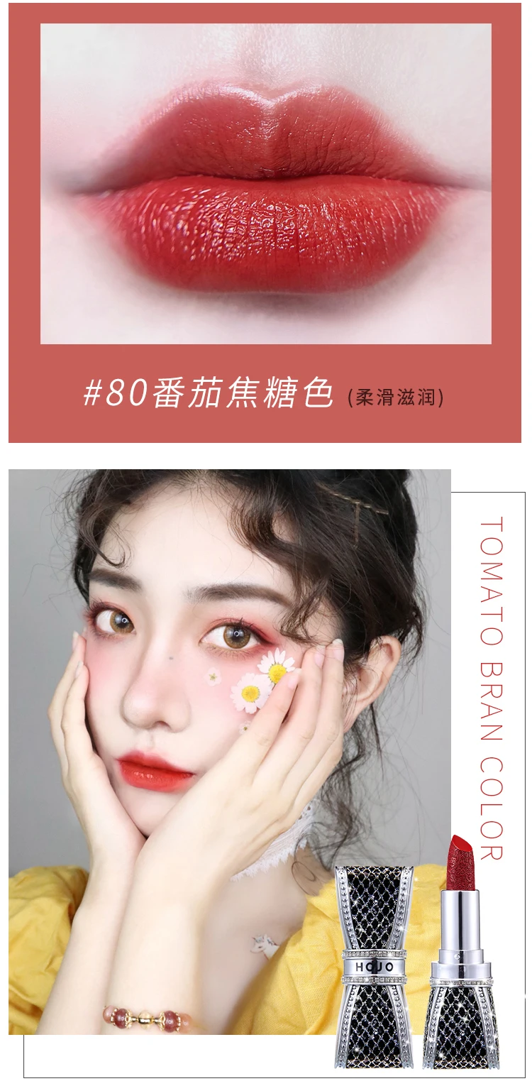 Название продукта Алмазная блестящая губная помада с галстуком-бабочкой Характеристика продукта Насыщенный цвет и деликатный макияж губ Высокая насыщенность цветового напряжения, насыщенный и стойкий, придает губам пухленькую сексуальную выразительную силу Гладкая влажная, матовая поверхность тумана Богатый Витамином Е, жиром авокадо. Питательные ингредиенты, легкие, мягкие и удобные, гладкие линии губ. Информация о продукте Бренд: HOJO Цвет: 6 видов цветов на выбор Содержание нетто: 3,8 г Срок годности: 3 года Состав: "воск", "сквалан", "изопропилпальмитат", "октаноик/каприк триглицерид", "гидрогенизированный Полиизобутилен", "токоферол (витамин е)", "Бутироспермама паркии" Фруктовый жир "," фитостерол изостеариновой кислоты димер линолевая кислота "," этилгексил пальмитат "," слюда "," метил парабен "," Ci 77491 "," Ci 77492 "," Ci 77891 "," Ci 77499 "," Ci 15850"