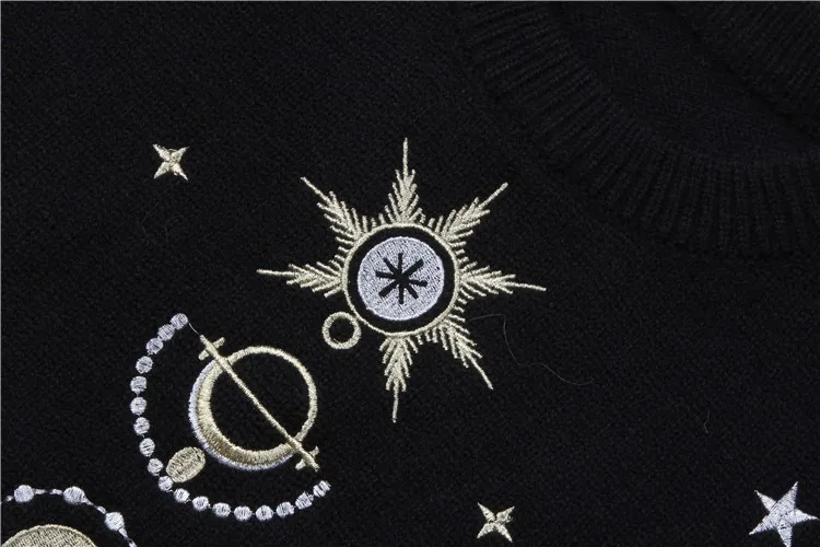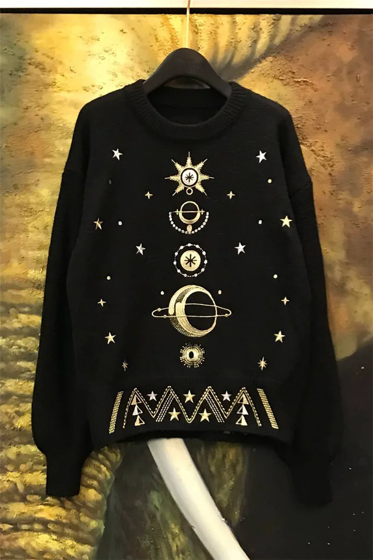 2020 Autumn Winter Female Cosmic Space Pattern Long Sleeves O-neck Knitted Pullover High Quality Women Sweater Jumper Runway Tops