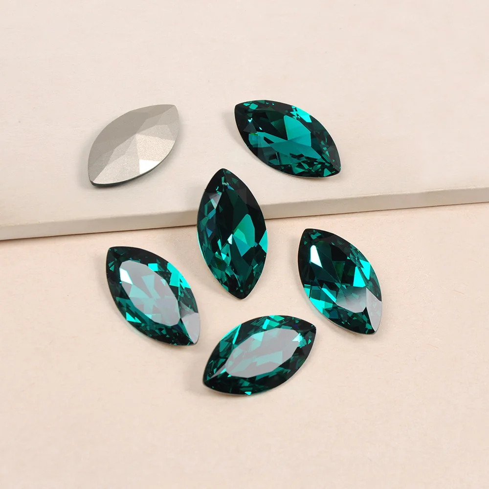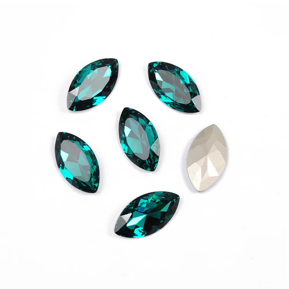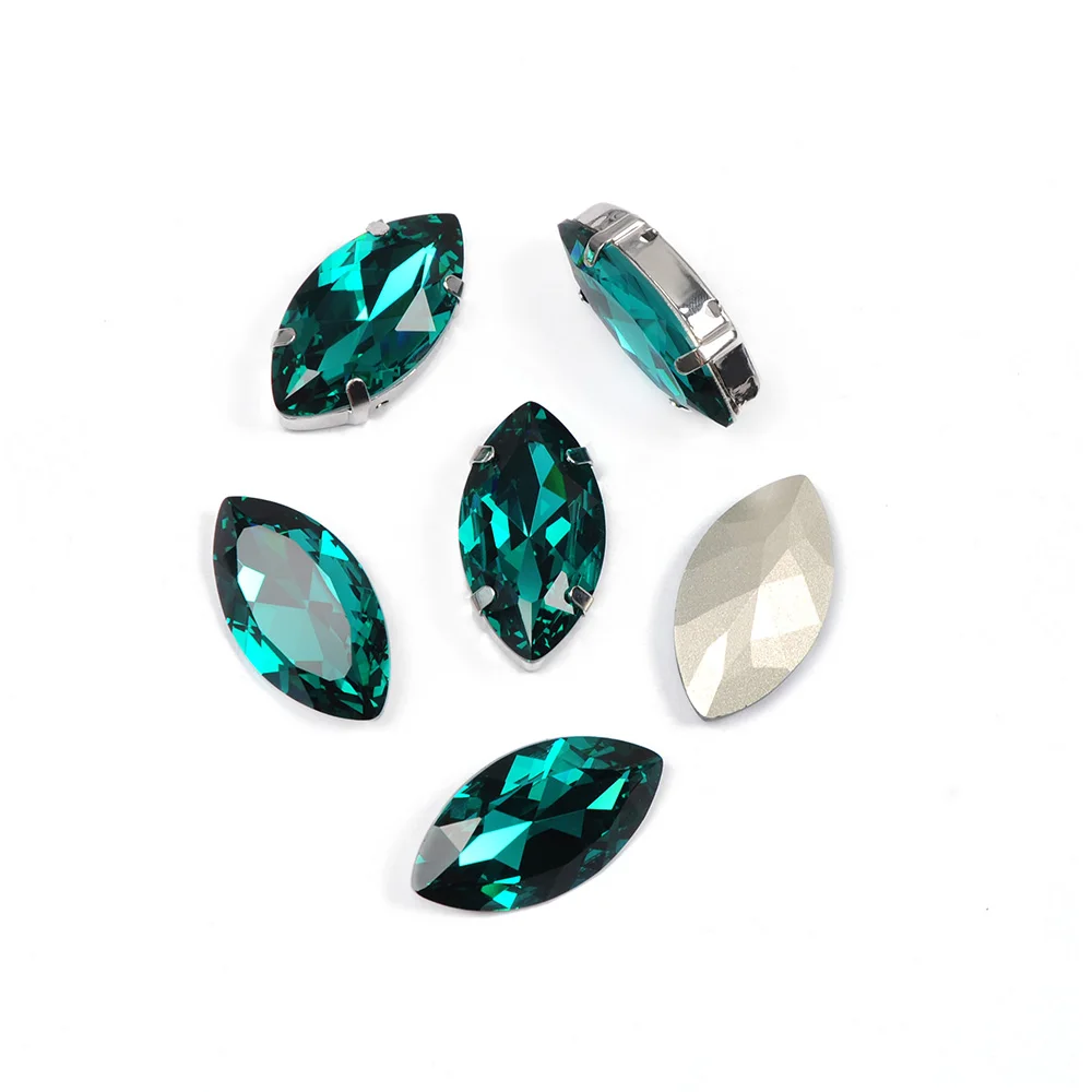 YANRUO 4227 Navette Blue Zircon Glass Sewing Crystal Sew On Strass Claws Stones With Pointback Rhinestones For Clothes