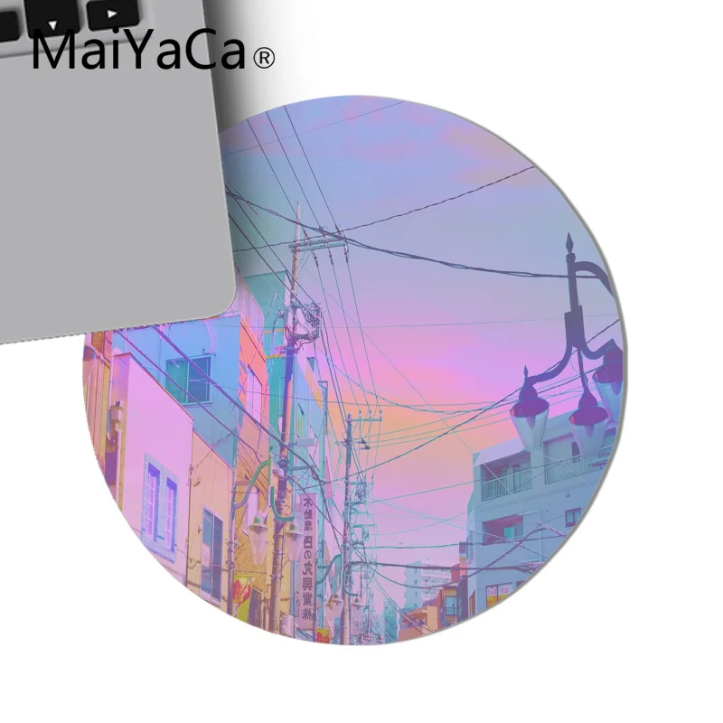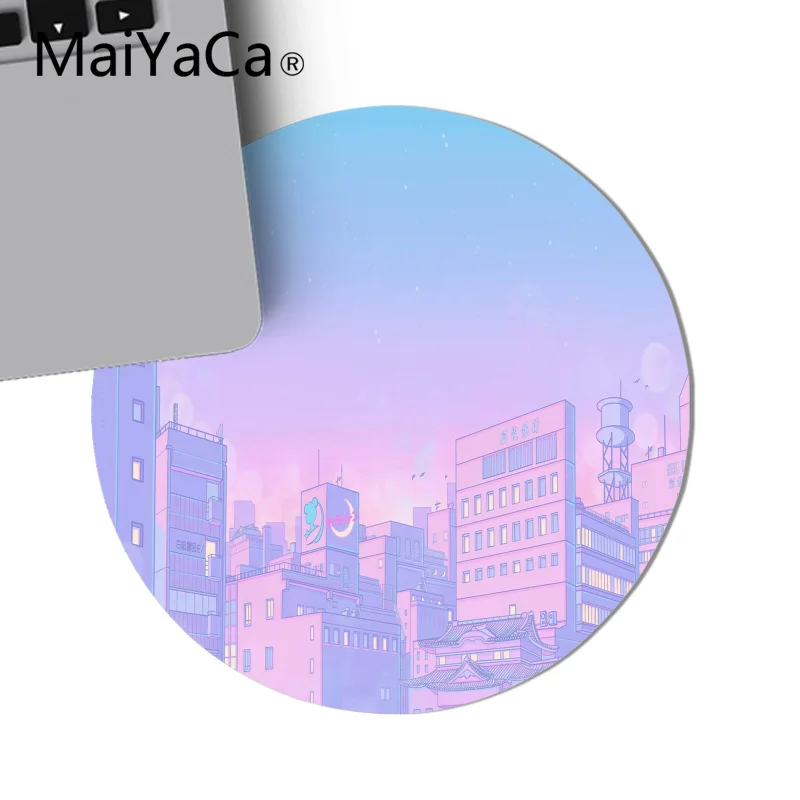 Розовый Аниме Луна Пейзаж эстетика Искусство Коврик для мыши игровой коврик для мыши круглый коврик для мыши нескользящий игровой коврик для мыши 22x22 см