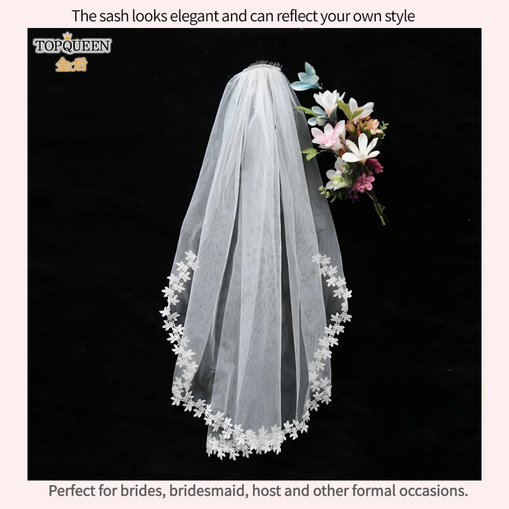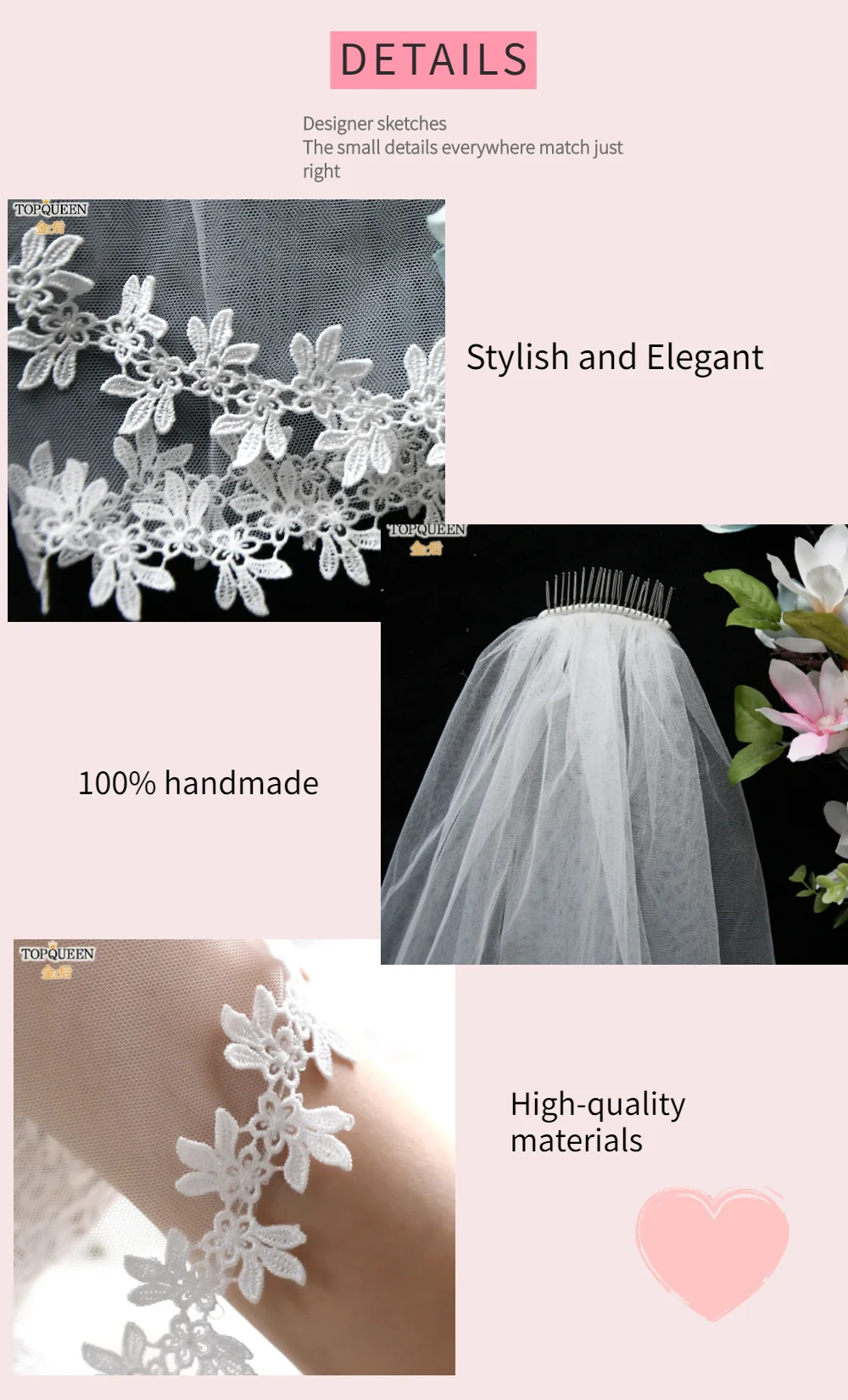 TOPQUEEN V53 короткая фата для невесты с кружевной каймой свадебная вуаль свадебные аксессуары дешевая импортная серебряная нить Цветочная Фата для невесты