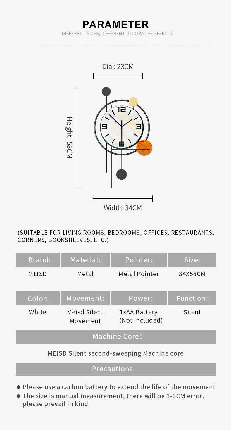 Название позиции: MEISD металлические часы маятник креативный круглый домашний декор кварцевые бесшумные часы кованые комнаты Horloge Бесплатная доставка Горячие предложения