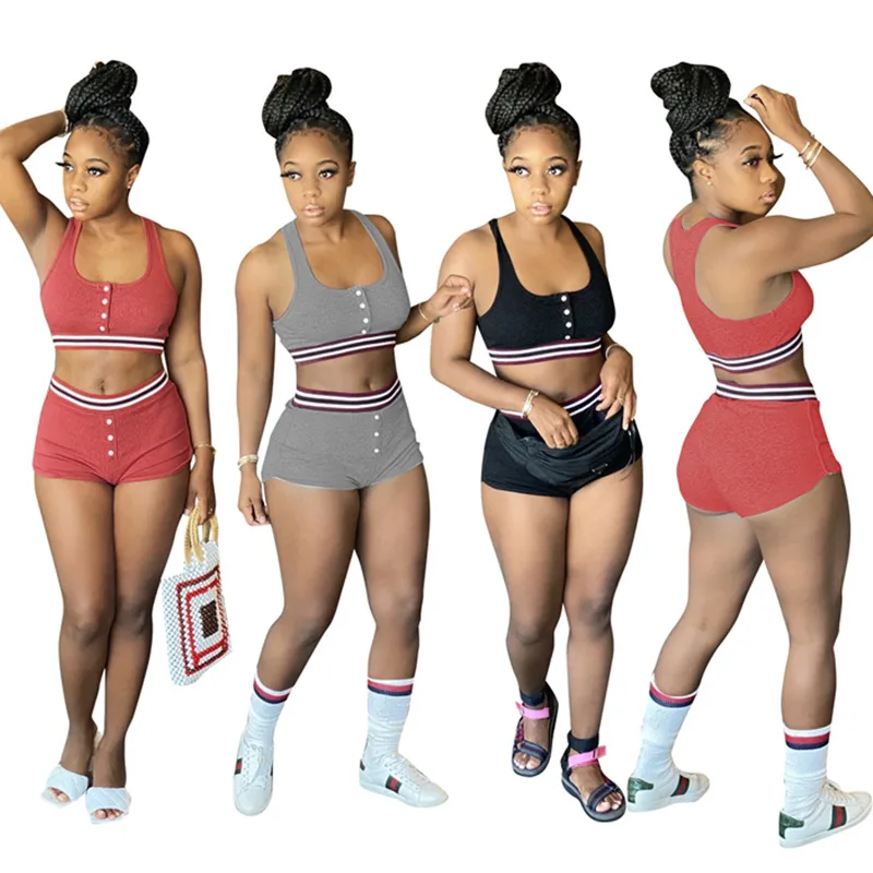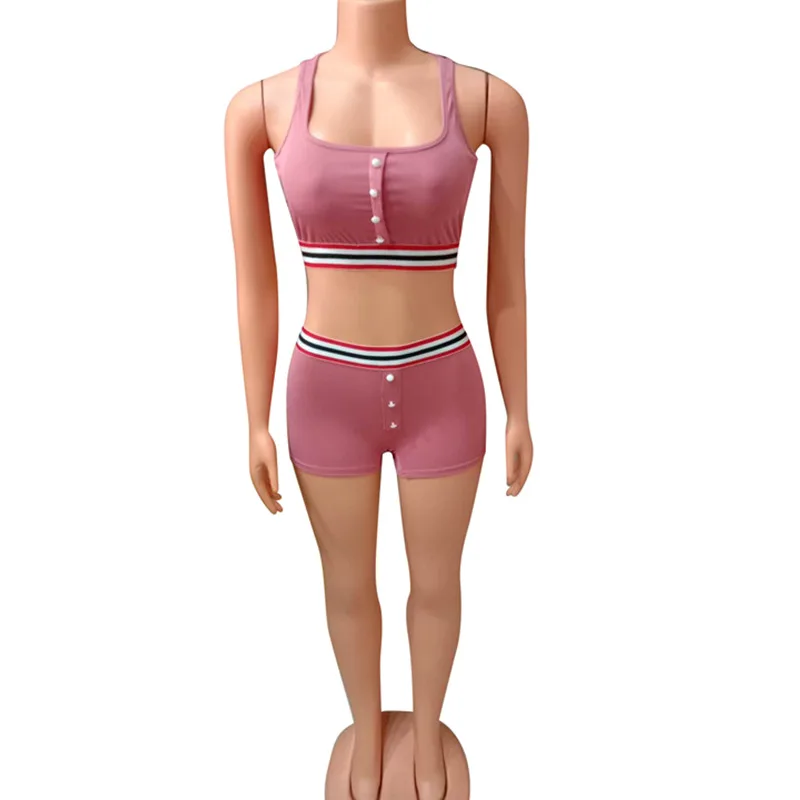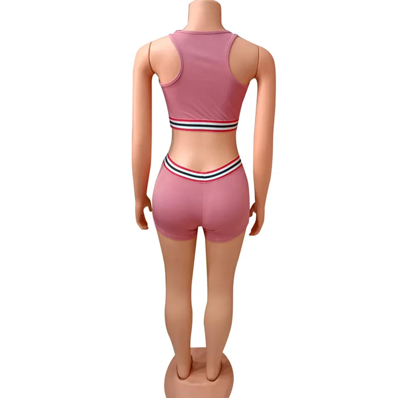 Женский модный полосатый спортивный жилет и шорты Комплект из двух предметов