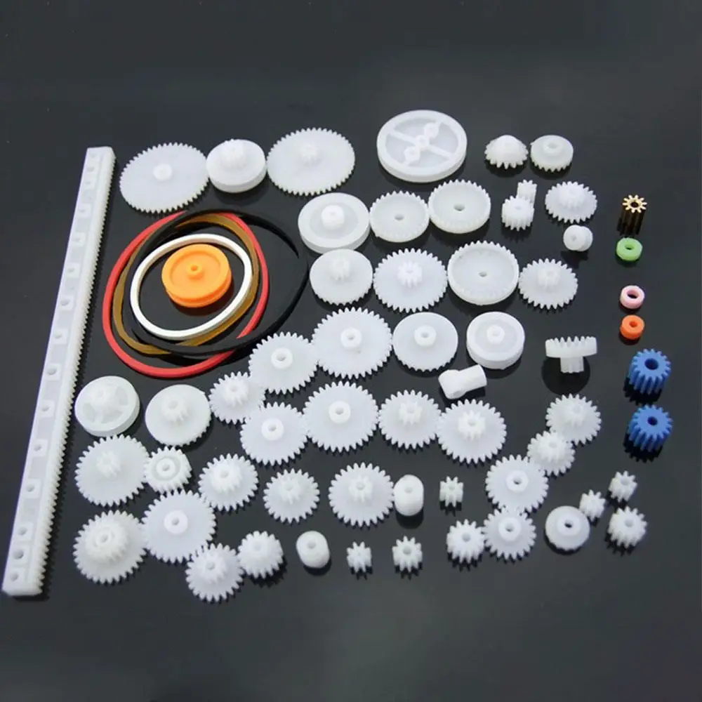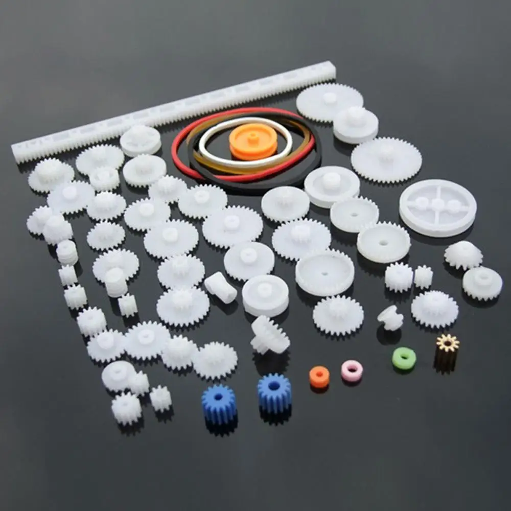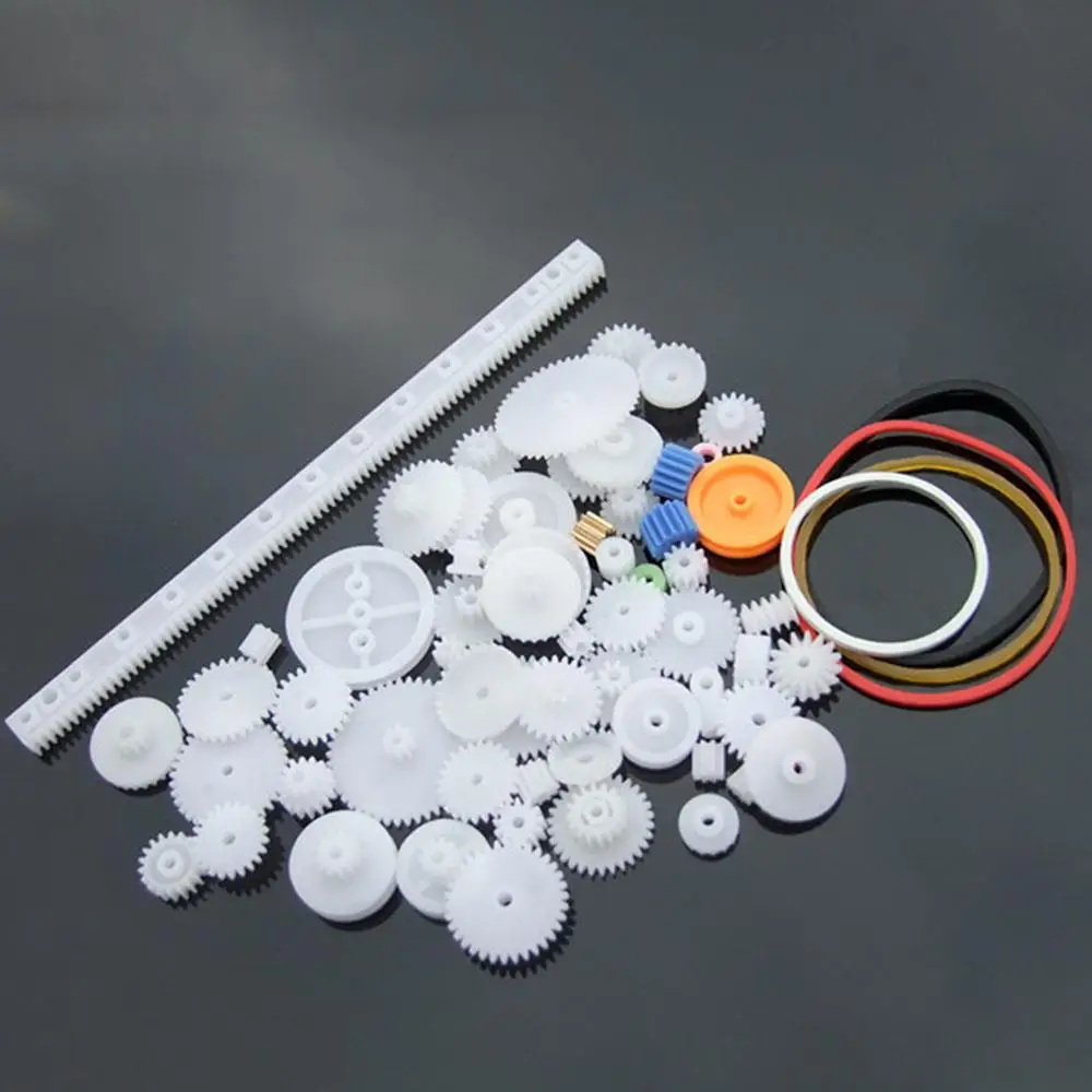 Все аксессуары в одной посылка-эта посылка включает шпиндель, одно/двойное зубчатое колесо, шкив, стойку, коническую шестерню, медную шестерню, втулки, оси, шины, резиновые ленты и другие аксессуары, которые вам нужны для diy игрушечных автомобилей/роботов/моторов.