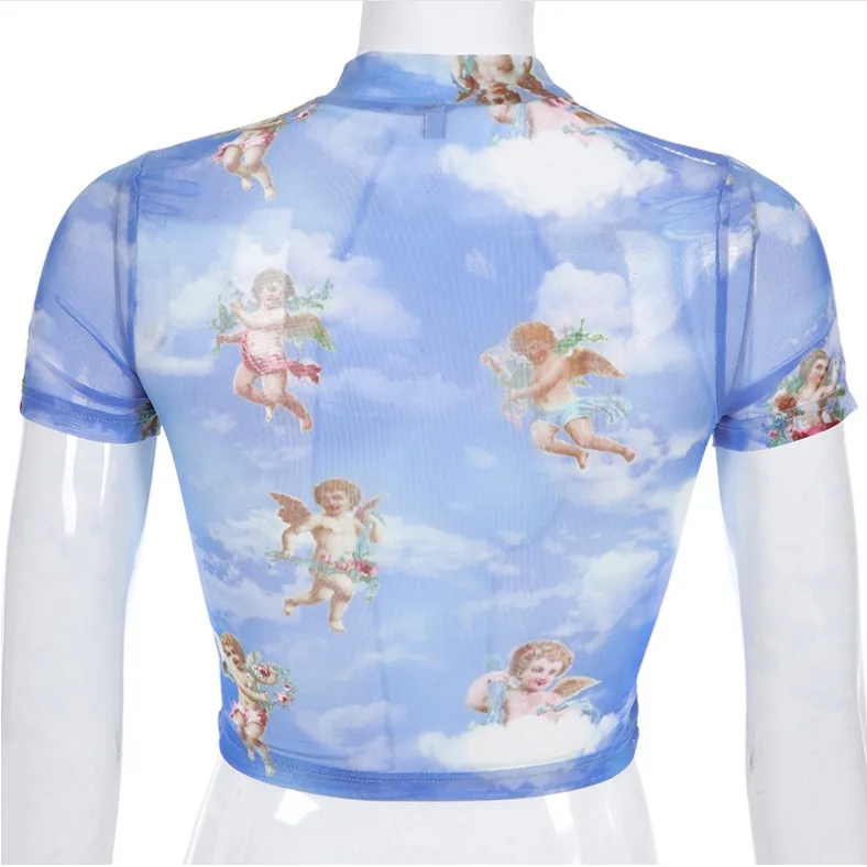 Женская водолазка с длинным рукавом Звездный угол печати сетка Перспектива короткий топ