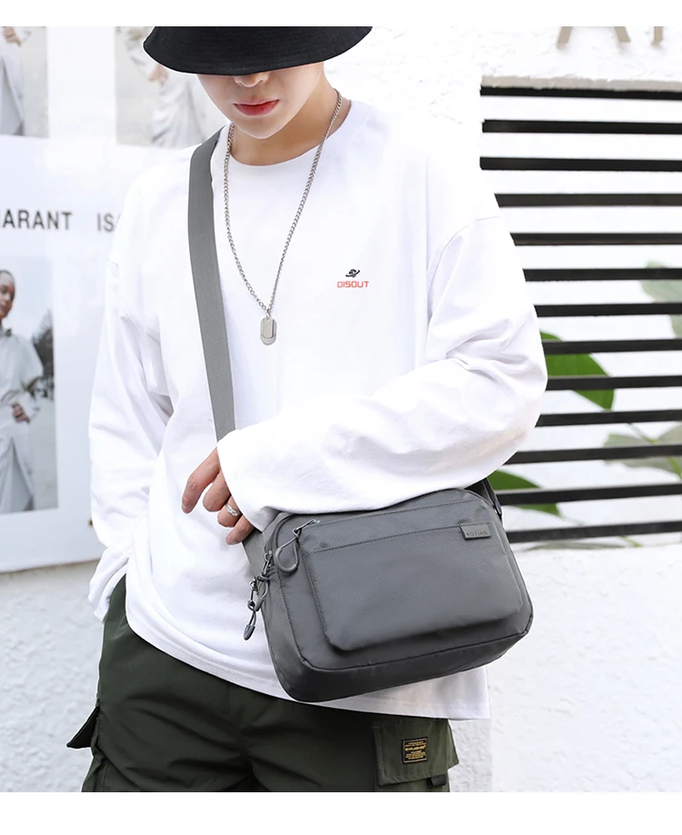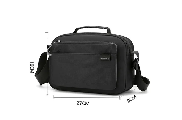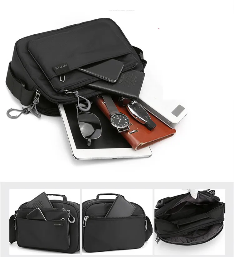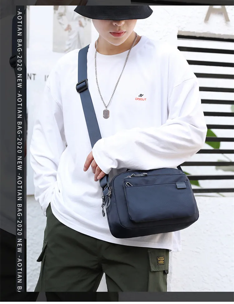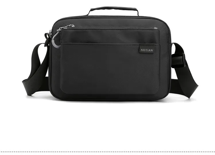 Black shoulder bag men's nylon waterproof messenger bag small solid soft zipper horizontal multi-pocket zipper travel handbag