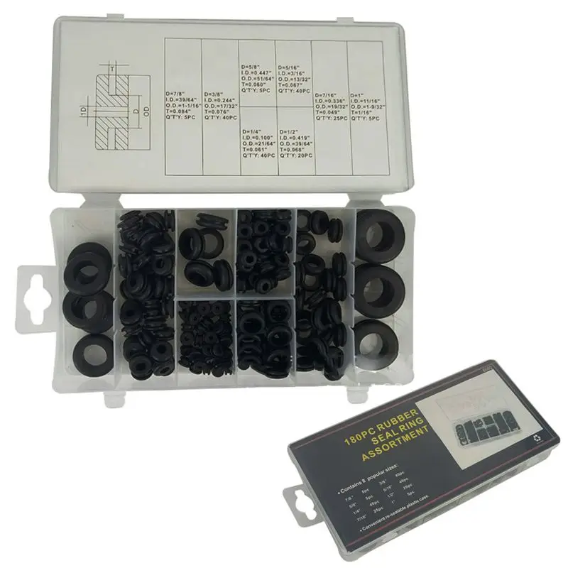 Резиновые прокладки обычно вставляются в отверстия в металлических панелях или некоторых других материалах для защиты проводов, кабелей или шнуров, улучшения трения или уплотнения кабелей, проходящих через них, от возможных механических или химических атак. Необходимый инструмент для автомобилей, морских и RV электропроводки, & герметичные краны и шланги и защищает проводку в брандмауэрах и соединениях.