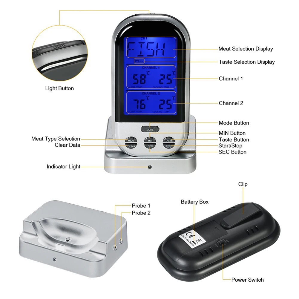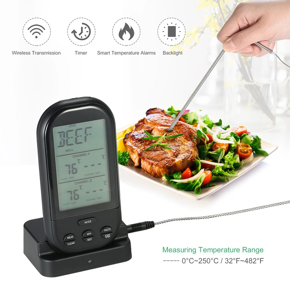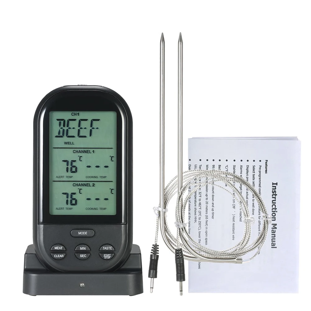 Беспроводной цифровой кухонный инструмент для приготовления пищи барбекю термометр для мяса с двойным зондом