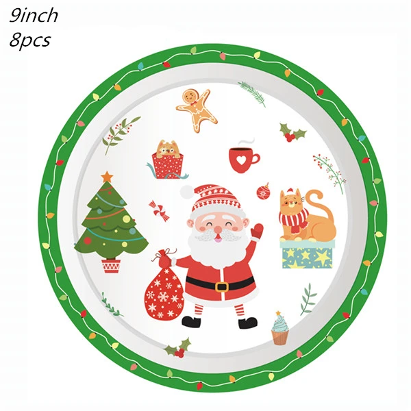 44 шт., одноразовая посуда для рождественской вечеринки, бумажные тарелки, набор стаканов для детской вечеринки, дня рождения, Санта-Клауса, Рождественский Декор для детского душа