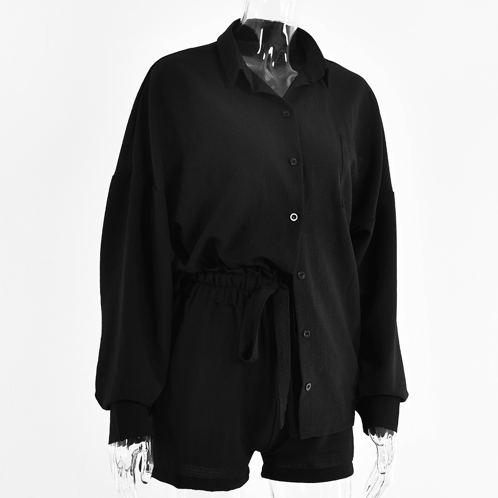 2021 летний спортивный костюм женский топ с длинным рукавом рубашка Женский и шорты Повседневный Женский комплект черный комплект из двух предметов свободный наряд женский
