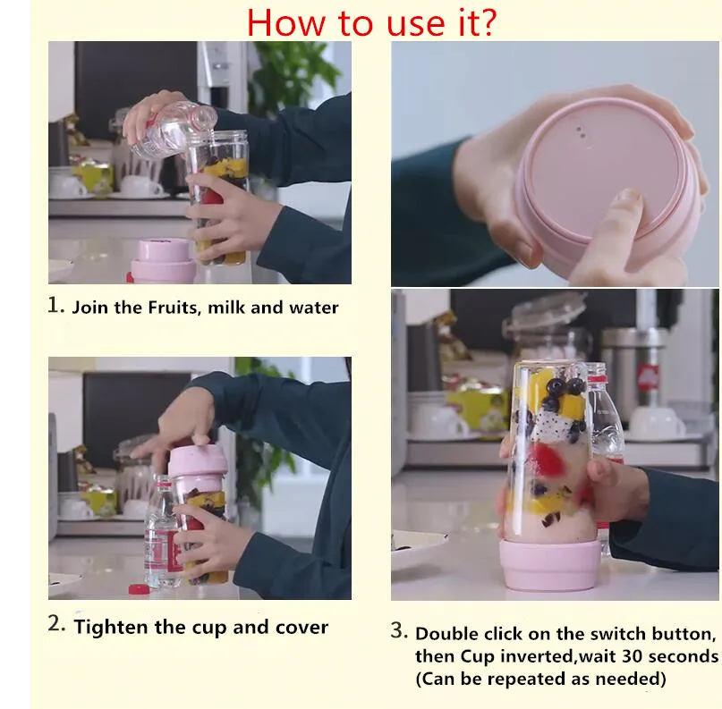 Фруктового сока чаша экстрактора Портативный сок решений Полностью складная лопасть Магнитное крепление для зарядки Возможность сделать 15 чашек сока при полной зарядке1. Это красный светильник при зарядке, и он станет зеленым светильник после полной зарядки